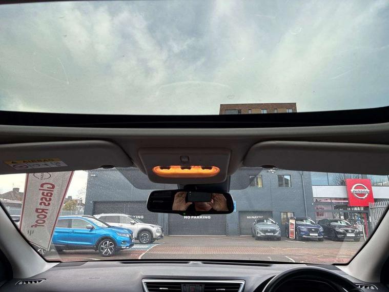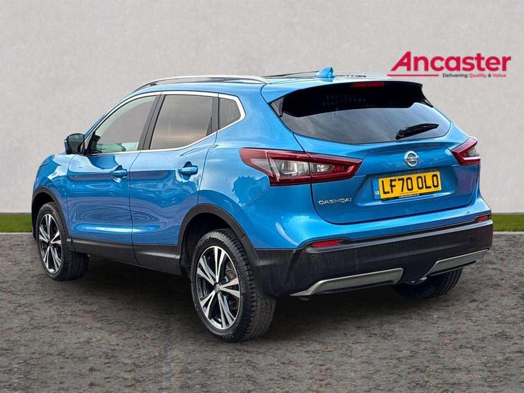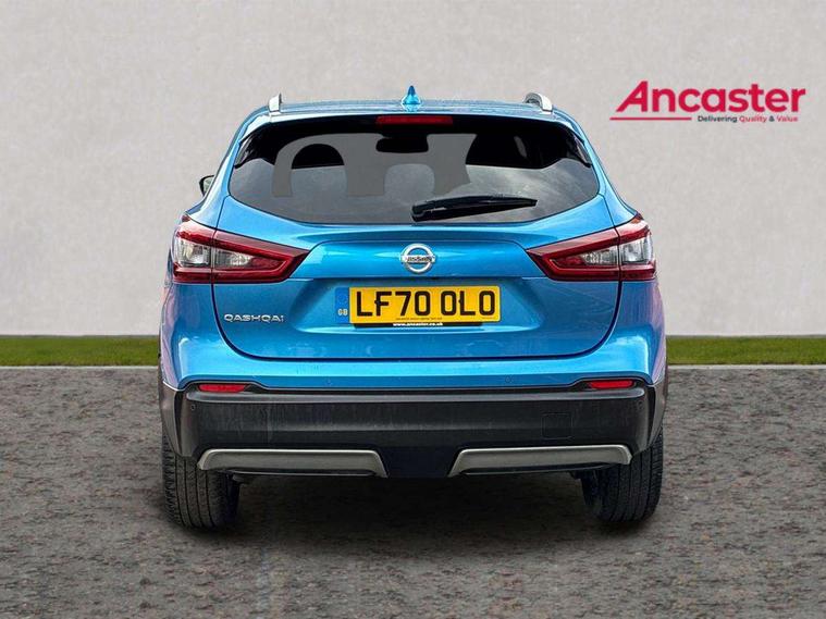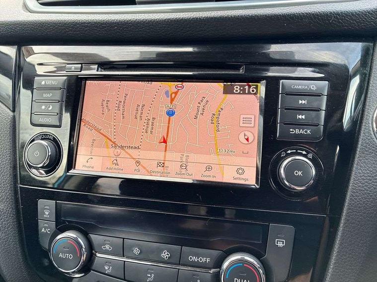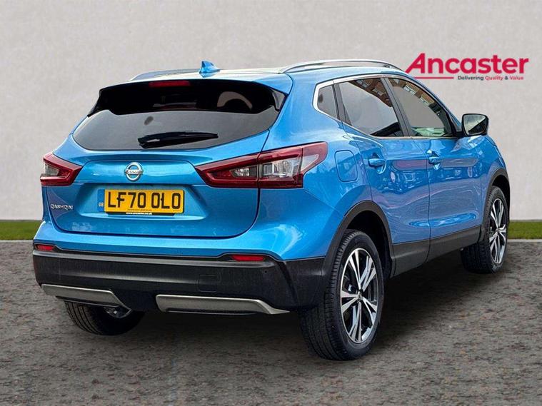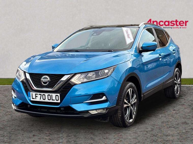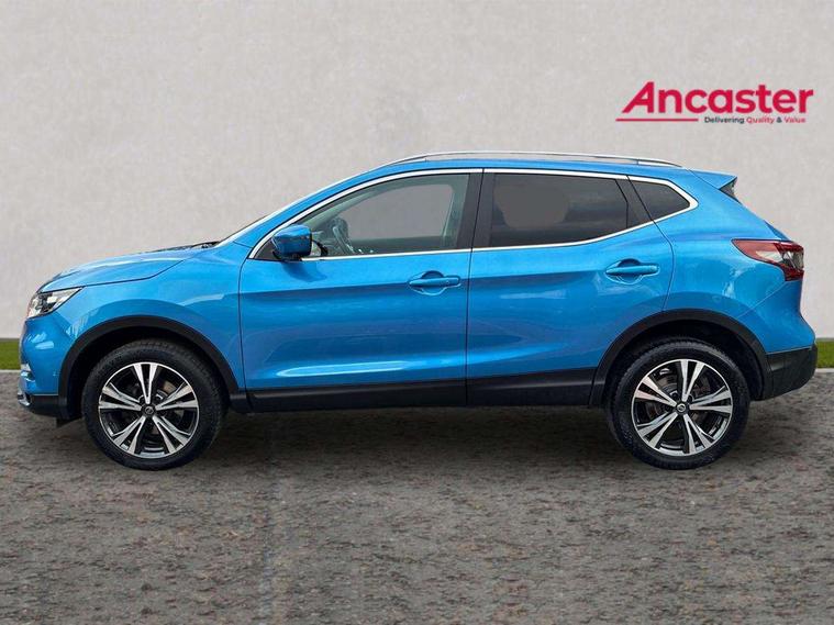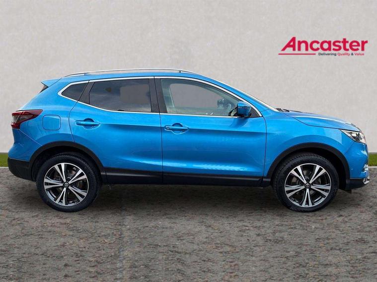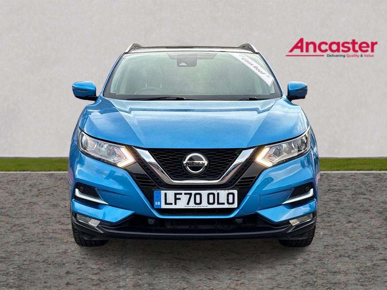Advanced drive assist display 5'' TFT coloured screen, Android Auto, Apple CarPlay preparation, Bluetooth connectivity, Electric speed sensitive power steering, Front parking sensors, Intelligent around view monitor, Intelligent parking assist, Lane departure warning system, Nissan connect evo 7" touchscreen navigation and entertainment system, Normal or sport selectable steering, Outside temperature sensor, Push button starter, Rear parking sensors, Rear view camera, Service interval indicator, Smartphone integration, Stop/start system, Tomtom connected services, Traffic sign recognition, Trip computer, Voice control system, 6 speakers, AM/FM radio, CD audio system, Aux-in socket, DAB Digital radio, Rear USB connection, Steering wheel mounted audio controls, USB port, Anti dazzle rear view mirror, Auto wipers, Body colour bumpers, Body coloured door handles, Body coloured door mirrors, Chrome window surround, Daytime running lights dip function when turn signal applied, Electric folding door mirrors, Electric front and rear windows with one touch illuminated window controls, Electric front/rear windows, Electrically adjustable door mirrors, Front fog lights, Halogen headlights, Heated door mirrors, High beam assist, Intelligent auto headlights, LED indicators in door mirrors, Matt silver roof rails, One touch 4x auto windows with illuminated switches, Privacy glass, Rear roof spoiler, Rear wiper with reverse link, Shark fin antenna, Signature LED daytime running lights, Underbody vortex generators, 2 X front 12v power sockets, 3 height adjustable rear headrests, 60/40 split folding rear seat, Ambient lighting, Ambient lighting in centre console, Boot lighting, Centre console storage box/armrest, Chrome interior door handles, Cloth upholstery, Configurable luggage board system, Driver's seat manual height adjust, Dual zone climate control, Front and rear door pockets with bottle holders, Front and rear seat belt pre-tensioners with load limiters, Height adjustable front headrests, ISOFIX restraints on outer rear seats x2, Leather D shaped steering wheel, Leather gear lever, Leather knee pad, Manual height adjustable front passenger seat, Manual lumbar support on driver seat, Parcel shelf stow function under luggage board, Pollen filter, Rear armrest with 2 cupholders, Synthetic leather wrapped door handle with contrasting stitching, Tilt/telescopic adjustable steering wheel, Safety shield plus pack - Qashqai, 6 airbags - Driver, front passenger, curtain and side airbags, ABS, ESP, EBD and brake assist, Auto hold function, Child locks on rear doors, Electronic parking brake, Front and rear seat belt warning, Front passenger airbag deactivation, Height adjustable front seatbelts, Hill start assist, Intelligent emergency braking with pedestrian recognition, Three 3 point rear seatbelts, Tyre pressure monitoring system, Anti-theft immobiliser, Intelligent Key, Remote central locking, Thatcham Cat.1 alarm, Glossy black dash trim, Tyre puncture repair kit,
