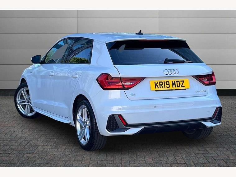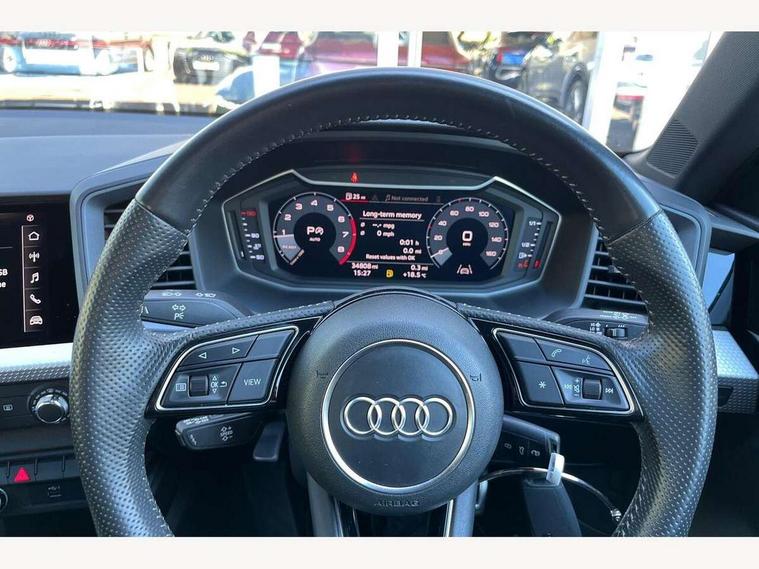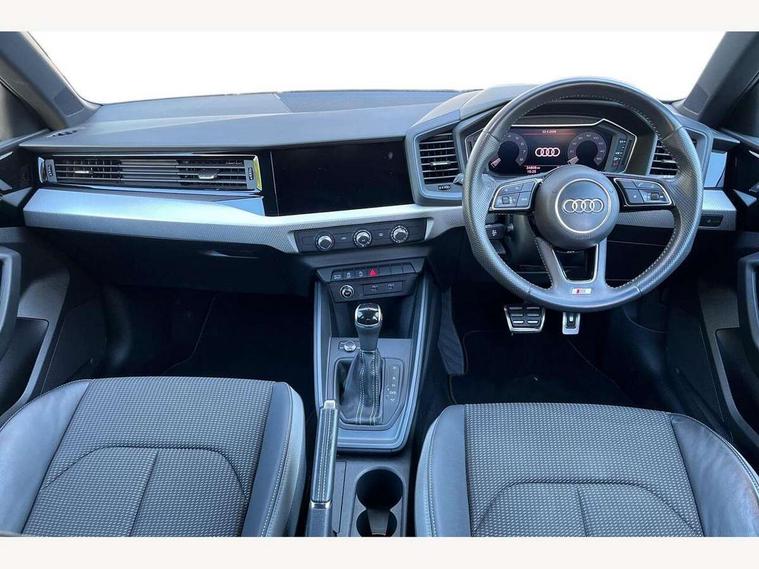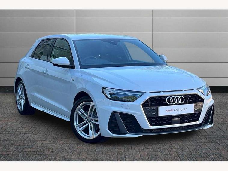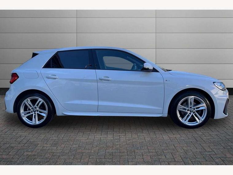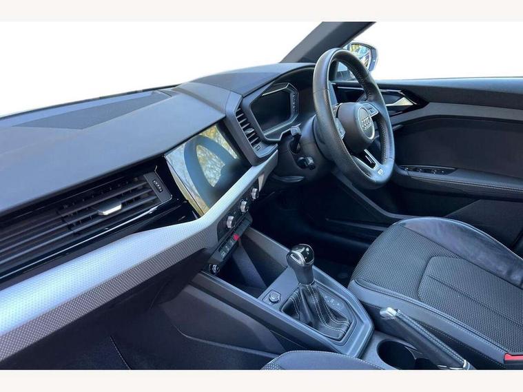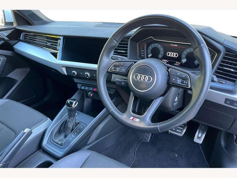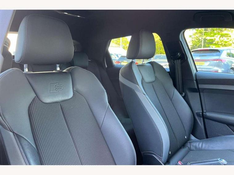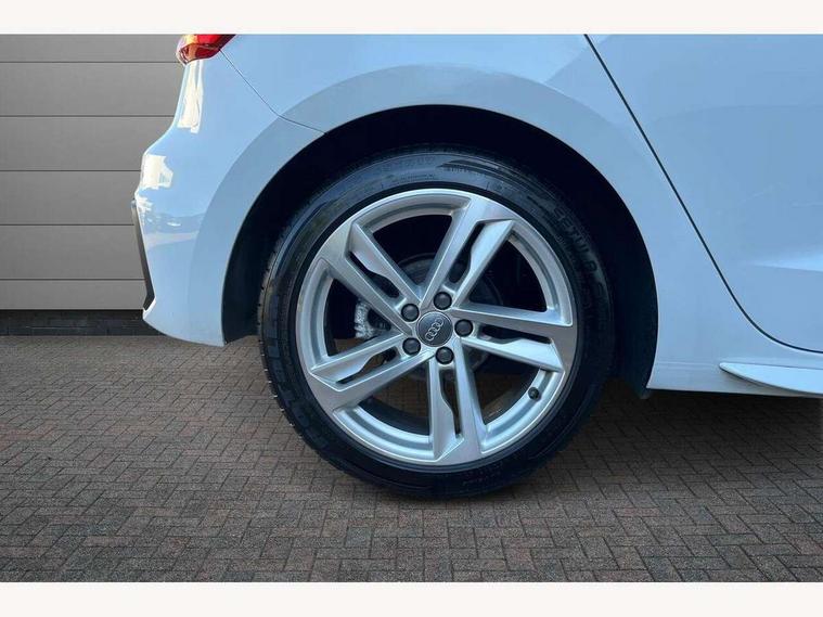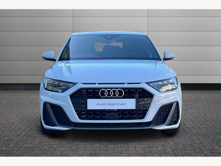 10.25" Digital instrument cluster display screen, Audi connect safety emergency and service including E-call, Audi drive select, Audi smartphone interface, Automatic start/stop system, Bluetooth interface, Driver's information system, Electromechanical power steering, Lane departure warning system, Service interval indicator, Speed limiter, Voice control system, Washer fluid level indicator, Sports suspension, 1 x SDXC card reader, 1 x USB type C and 1 USB type A charging points, Audi music interface, Bluetooth audio streaming, DAB Digital radio, MMI radio plus with 8.8" colour MMI display screen and MMI touch, Auto dimming rear view mirror, Body colour side sill mouldings, Body coloured bumpers, Body coloured door mirrors, Door sills with aluminium inlays and S Line logo, Electric front and rear windows, Front side air inlets in grained matt black and C frame in titanium black, Heat insulating glass windscreen and side windows, Heated rear windscreen, LED headlights with LED rear lights + dynamic rear indicators, Matt aluminium silver tailpipe trim, Matt black radiator grille frame, Matt platinum grey in front spoiler clip and rear diffuser clip, Rain and light sensors, Rear fog lights, Rear wiper, S line badges on front wings, S line exterior bumpers, S line roof spoiler, Side air inlet frames titanium black, Side front spoiler lips in grained matt black, 12V socket in centre console with two cup holders, 3 rear seats, Black cloth headlining, Driver and passenger seat with manual height adjust with forward and backwards adjustment, Front and rear black floor mats with contrast stitching in fine silver, Front head restraints, Height and reach adjustable steering wheel, ISOFIX child seat mounting in front passenger and rear outer seats, Leather gear knob with aluminium trim, Leatherette handbrake grip, Luggage compartment light with front and rear reading lights, Lumbar adjustment for front seats, Rear head restraints, Split folding rear seats, Stainless steel pedals, 3x3 point rear seatbelts, Audi pre-sense front with pedestrain and cyclist recognition, Brake assist function, Driver and front passenger airbag with front side and head airbags, Electronic Stability Control including ABS, EBD, ASR and EDL, Front and rear seatbelt reminder, Front passenger airbag deactivation switch, Hill hold assist, Seatbelt height adjustment for front seats, Seatbelt monitoring, Tyre pressure warning light, Warning triangle and first aid kit, Anti theft alarm, Anti theft wheel bolts and loose wheel warning, Immobiliser, Remote central locking with 2 remote folding keys, Aluminium trim for control switches, air vents and digital instrument cluster, Silver grey inlays polygon structure in diamond paint finish, Structured grey accent areas including air vents, door handle recesses and centre console in quartz paint finish,