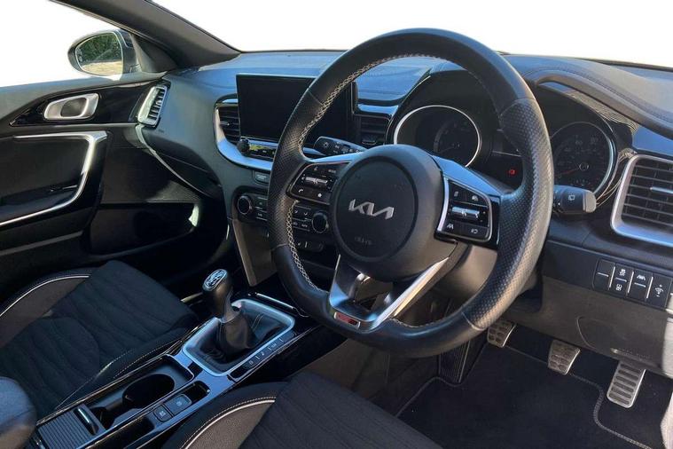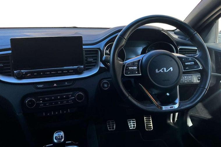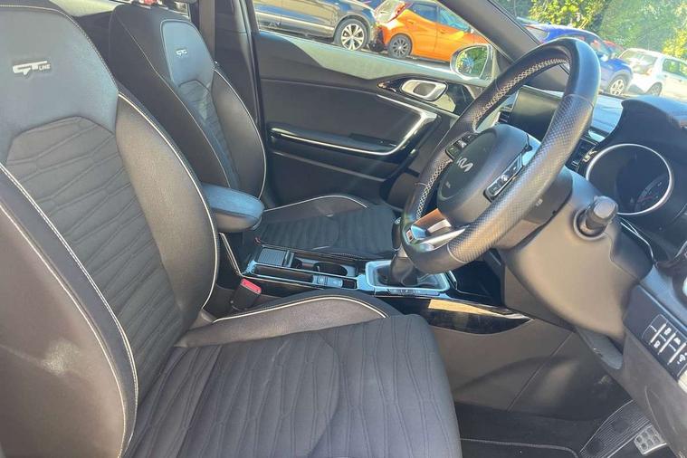 10.25" touchscreen satellite navigation including telematics, 4.2" supervision colour cluster display, Apple car play/Android Auto, Bluetooth with Voice Recognition & Music Streaming, Cruise control + speed limiter, Driver attention warning, Emergency call service, Emergency stop signalling system, Forward Collision-Avoidance Assist (FCA) - City/Pedestrian/Cyclist, Kia connected services featuring TomTom live, Lane keep assist, Motor driven power steering, Rear parking sensor, Reversing camera with dynamic guide lines, Trip computer, Intelligent Stop and Go, 6 speaker audio system, DAB Radio with MP3, Illuminated USB & aux ports, Steering wheel mounted controls, USB & AUX Ports for Connection of a Media Device, USB Fast Charger in Front Centre Console, 3rd brake light, Air intake with black accent lower lip, All-round Electric Windows with Front Auto Up & Down Function, Auto dimming rear view mirror, Automatic defog system, Automatic headlights, Body colour bumpers, Body colour exterior door handles, Body coloured rear roof spoiler with high gloss black trim, Chrome window surround, Electric adjustable/heated/folding door mirrors with LED Indicators, Exterior front door handle illumination, Front fog lights, Front wiper de-icer, Headlamp levelling, Heated rear window with timer, High beam assistant, High Gloss Black and Satin Chrome Radiator Grille, High gloss black door mirrors, High gloss black side sill mouldings, LED daytime running lights, LED full width tail lights, LED rear fog light, LED rear lights, Privacy glass in rear windows and tailgate, Projection headlights, Puddle lights, Rain sensing front wipers, Rear side wing doors, Rear wash/wipe, Wide view drivers door mirror, Windscreen Washer Level Warning, 2 x 12V Power sockets (Front centre console), 3 seat bench in 2nd row, 3 x passenger assist grips, 60/40 split folding rear seat, All-round height adjustable headrests, Aluminium pedals, Black headlining, Centre console storage and sliding armrest, Cloth/faux leather upholstery, Cupholders in rear armrest, Dash illumination dimmer switch, Driver & Front Passenger Sunvisors with Vanity Mirror Illumination & Ticket Holder, Driver + front passenger electric lumbar support, Driver's seat height adjuster, Dual zone automatic air conditioning, Front and rear door storage, Front map light with sunglasses case, Front Passenger Seat Height Adjuster, Front seat and rear pockets, Gear shift indicator, Heated front seats, Heated steering wheel, Illuminated ignition key hole, Interior door lock/unlock function, ISOFIX Child seat top tethers and anchor fixings, Leather D-Cut steering wheel with grey stitching, Leather gearshift, Load area cover, Luggage area light, Luggage area parcel shelf, Luggage hooks, Premium centre console with sliding cupholder cover, Rear Air Ventilation, Rear centre armrest, Rear coat hooks, Satin chrome interior door handles, Single front passenger seat, Tilt/telescopic adjustable steering wheel, ABS with Electronic Brakeforce Distribution (EBD) and Brake Assist System (BAS), All round 3-point seatbelts, Dual front side airbags, Dual horn, Electric parking brake, Electronic stability control (ESC) and vehicle stability management (VSM), Front passenger airbag deactivation, Height adjustable front seatbelts, Hill start assist control (HAC), Impact sensing auto door unlocking, Rear door child safety locks, Seatbelt reminder warning, Traction control, Twin curtain airbags, Twin front airbags, Tyre pressure monitoring system, Alarm system, Engine Immobiliser & Deadlocks, Engine Start/Stop Button with Smart Entry System, Locking wheel nuts, Speed sensitive auto door locking, Black high gloss front console tray garnish & door trim, Satin Chrome Fascia Trim, 17" GT-Line alloy wheels, Tyre mobility system,