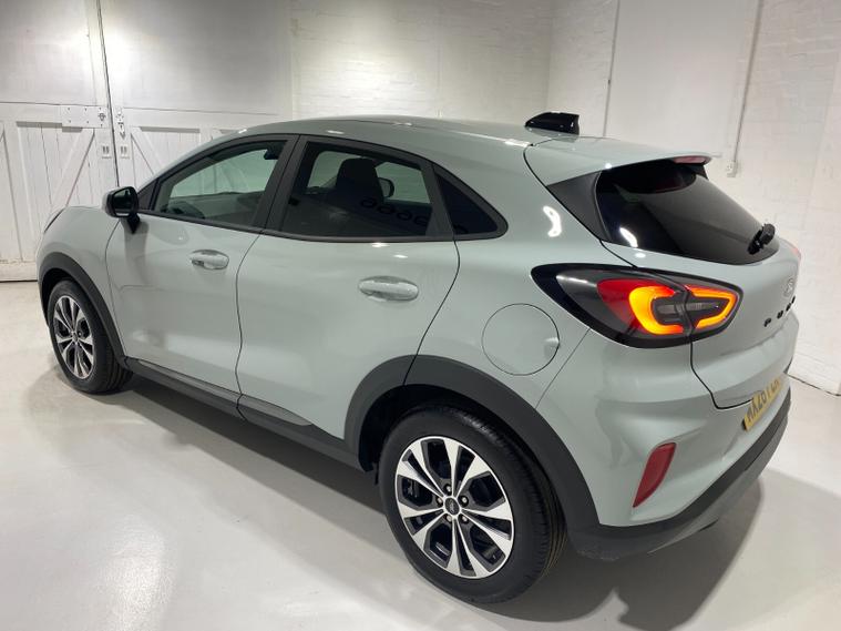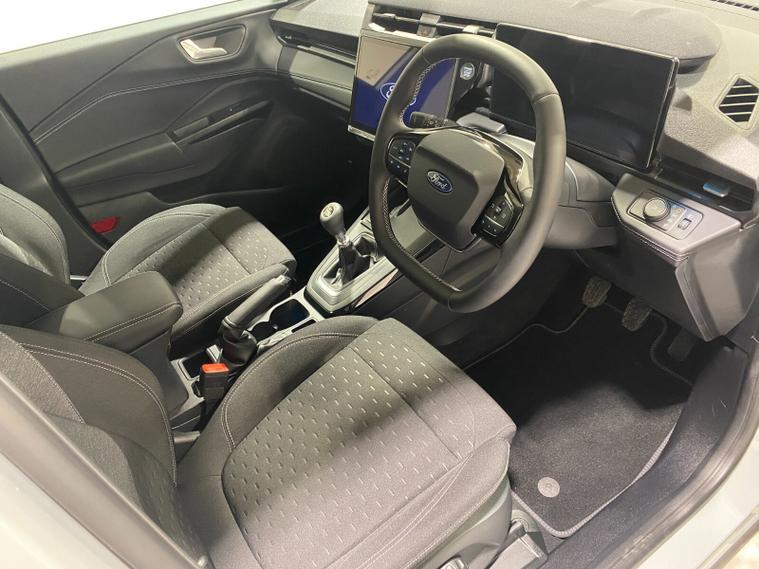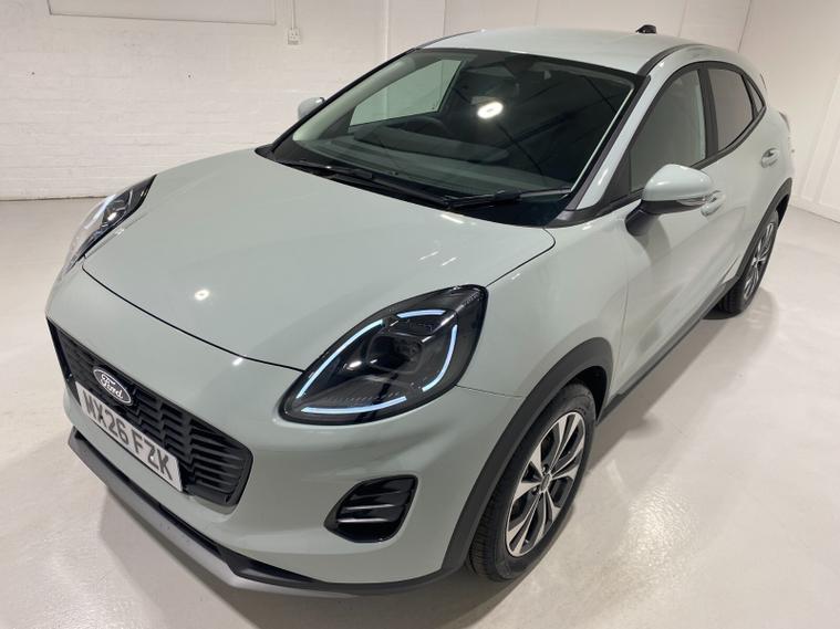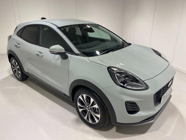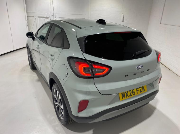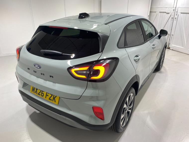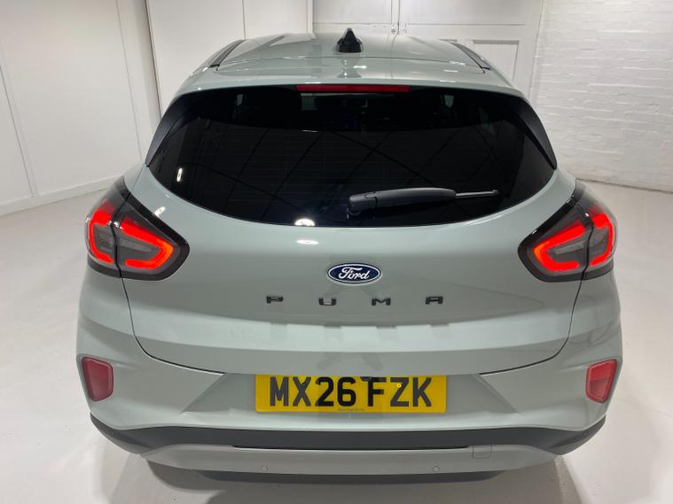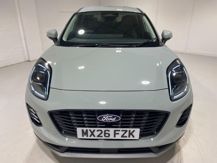 2026 26 Reg Puma 1.0 EcoBoost (125PS) mHEV 6 spd TITANIUM 5dr. Cactus Grey metallic with Charcoal cloth interior, SYNC4 TOUCHSCREEN DAB SATELLITE NAVIGATION, REAR CAMERA, WINTER PACK with HEATED FRONT SEATS and HEATED STEERING WHEEL, Bluetooth USB, Apple CarPlay, Android Auto, FORD MEGABOX EXTENDED BOOT SPACE, REAR parking sensors, 17 inch alloy wheels, AIR CON, FORD power start button, Drivers Assistance features to include traffic sign recognition, auto high beam & driver alert, centre console with arm rest, tyre pressure monitoring system, Thatcham alarm, NCAP Pack (lane-keeping alert & lane-keeping aid, speed limiter, rear seat belt minder, rear centre head restraint & auto-headlamps), front fog lamps with cornering lights, heated front screen, privacy glass, remote central locking, electric front windows, ESP, Hill start assist, trip computer, ambient lighting, 190 miles (MX 26 FZK).