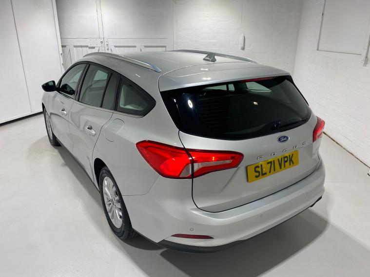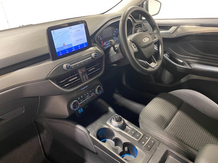 2022 71 Reg Ford Focus 1.0 Turbo EcoBoost mHEV (125PS) 8 spd Automatic TITANIUM EDITION 5dr ESTATE. Moondust Silver metallic with Ebony cloth interior, HEATED FRONT SEATS, SYNC 3 SATELLITE NAVIGATION with FORD PASS CONNECT, FRONT & REAR PARKING SENSORS, POWER FOLDING DOOR MIRRORS with puddle lights, LED front fog lamps with cornering function, DEATC AIR CON, Lane Keeping aid with lane keeping alert, post collision braking & pre-collision assist, cruise control with intelligent speed assist (limiter), electric park brake with auto hold, Auto lights, wipers & auto dimming rear view mirror, Power start button, Hill start, trip computer, ESP, Quick clear front screen, 11, 325 miles (SL 71 VPK).