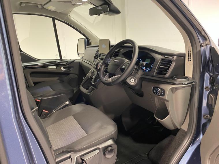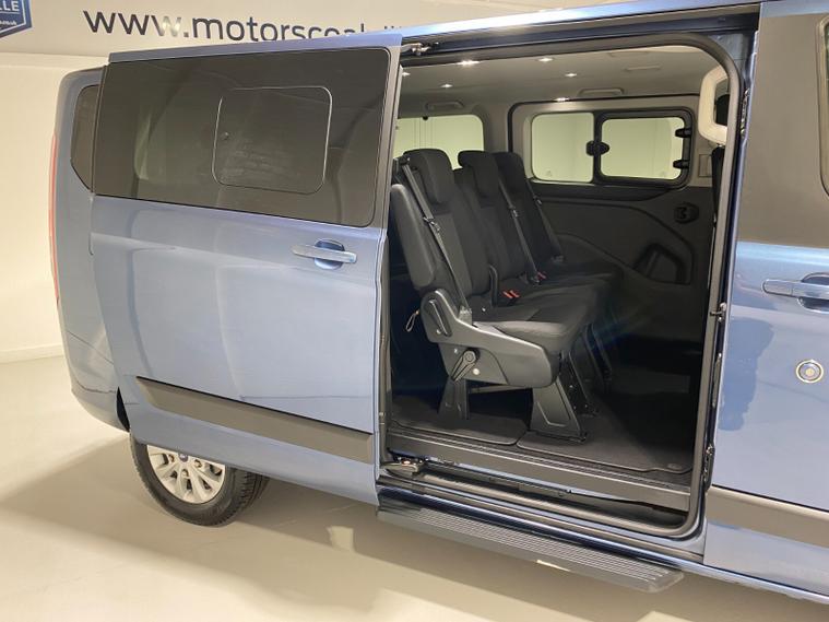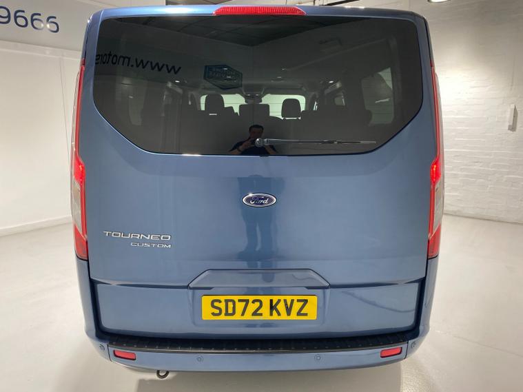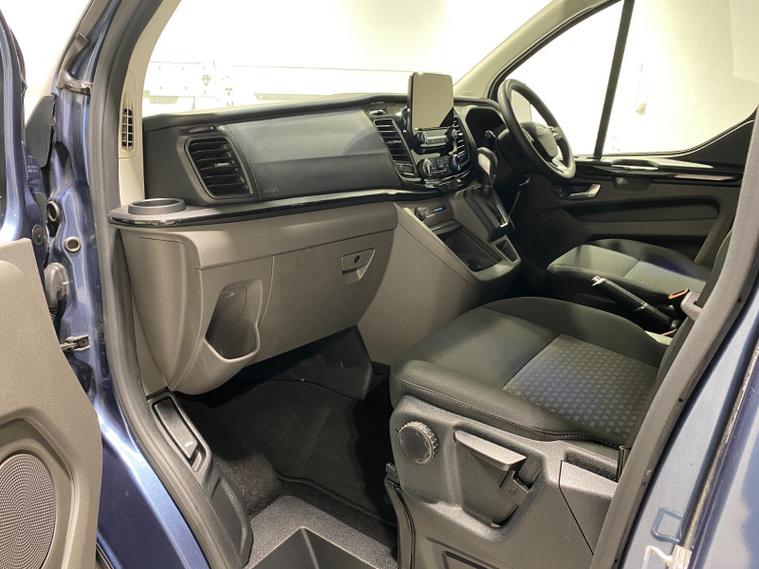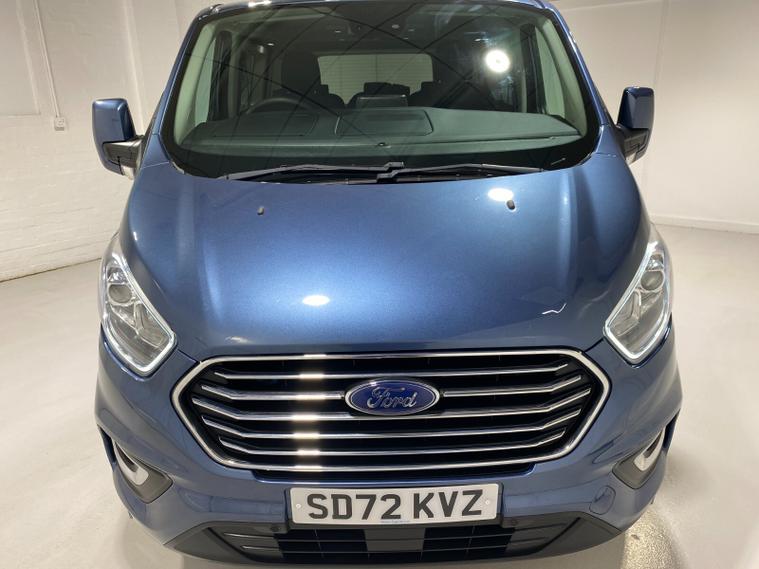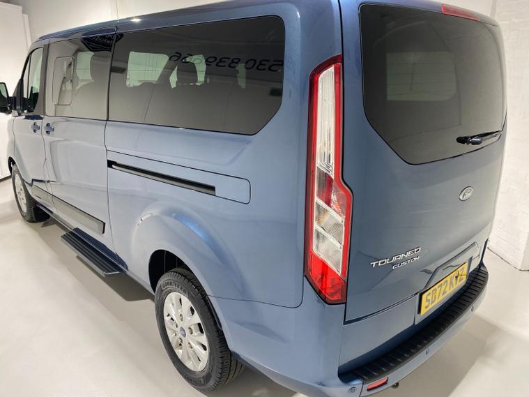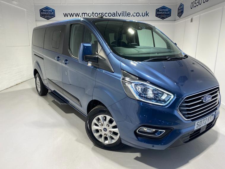 2022 72 Reg Ford Tourneo Custom L2 320 EcoBlue 2.0 TDCi (130PS) ZETEC LWB AUTOMATIC, 8 SEATER. Chrome Blue metallic with charcoal cloth interior, 17 inch alloy wheels, HEATED FRONT SEATS, FRONT and REAR PARKING SENSORS, Ford SYNC 3 TOUCHSCREEN with Apple CarPlay and Android Auto, Bluetooth USB, DAB, remote central locking, front electric windows, privacy glass, electrically operated, heated and power folding mirrors, auto lights and wipers, LED daytime running lights, front fog lights, quickclear heated front windscreen, 19, 498 miles (SD 72 KVZ).