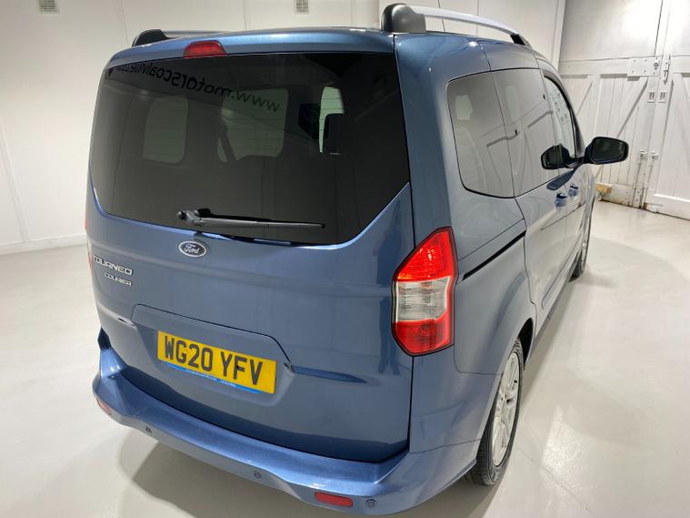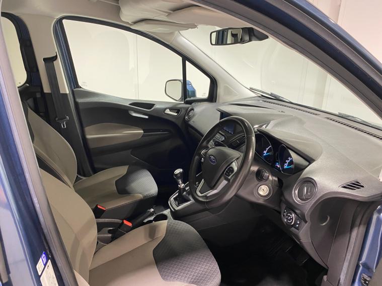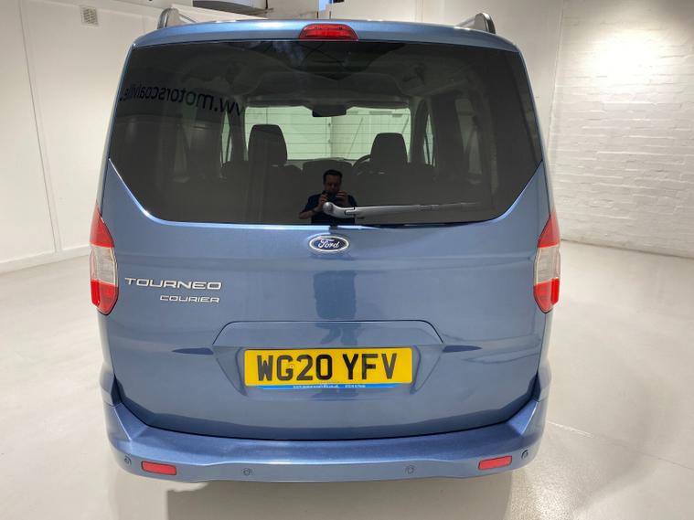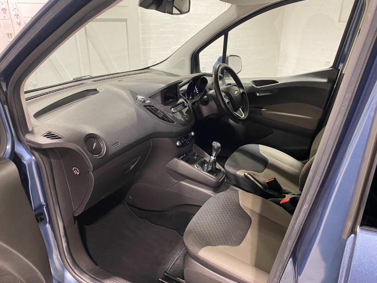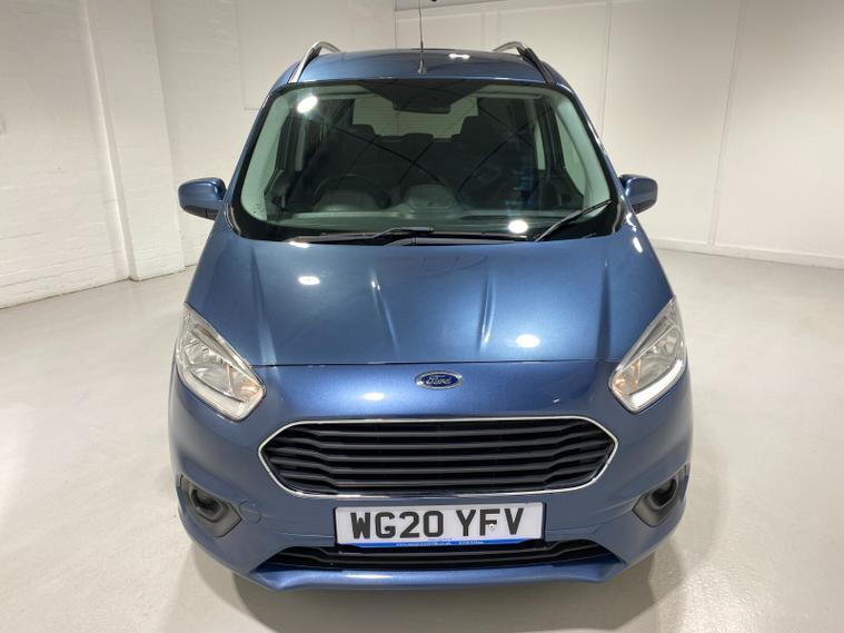 2020 20 Reg Ford Tourneo Courier 1.5 TDCi (100PS) 6 spd TITANIUM 5dr. Chrome Blue metallic with Medium Light Stone cloth interior, 16 inch alloy wheels, SYNC3 TOUCHSCREEN NAVIGATION, DAB, Bluetooth USB, CLIMATE CONTROL AIR CONDITIONING, REAR PARKING SENSORS, PRIVACY GLASS, electric front windows, heated front and rear screens, cruise control with speed limiter, roof rails, auto lights, rain sensing wipers, front driver and passenger, side and curtain airbags, front fog lights, electrically operated and heated door mirrors, tinted glass, ABS, ESP, 27, 707 miles (WG 20 YFV).