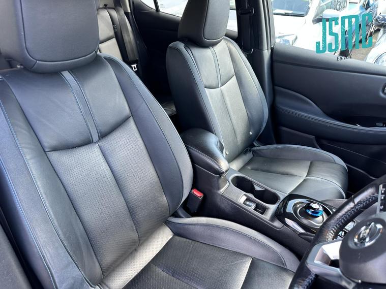 Inside, the Nissan Leaf is adorned with luxurious leather upholstery complemented by ultra suede inserts in black. This combination not only elevates the overall interior ambience but also provides a comfortable and refined seating experience for all occupants. The high-quality materials used in the cabin create an inviting atmosphere, making every journey a pleasure. The attention to detail in the interior design reflects the Nissan commitment to quality and comfort, ensuring that both driver and passengers enjoy a premium experience.