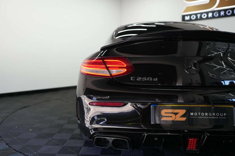 SZ MotorGroup Nottingham are pleased to offer this stunning Mercedes-Benz C-CLASS 2.1 C250 AMG Line Premium Plus D Auto 2dr, REGISTRATION EU18NYO. Presented in excellent condition throughout, this example benefits from a full exterior styling kit, quad exhaust system, stealth pack, and unmarked 19” AMG alloy wheels in gloss black.