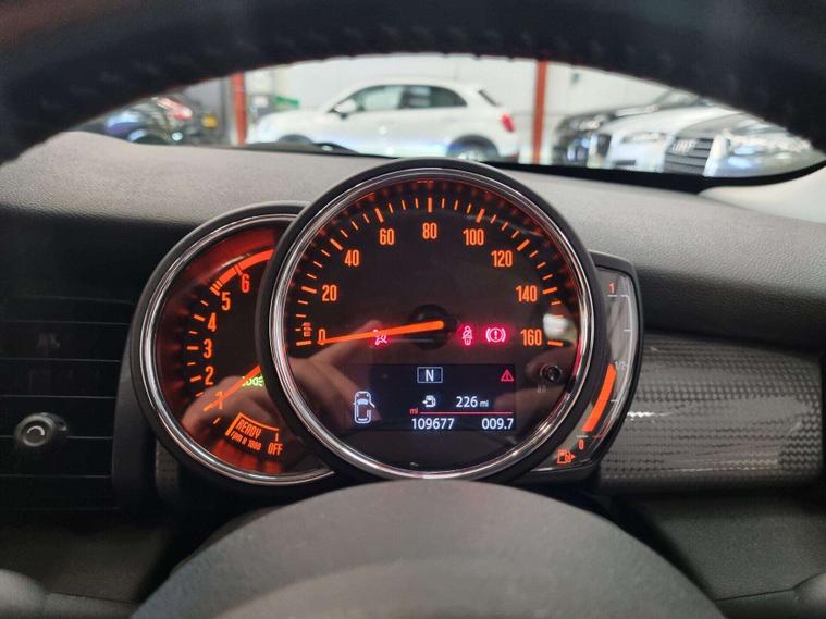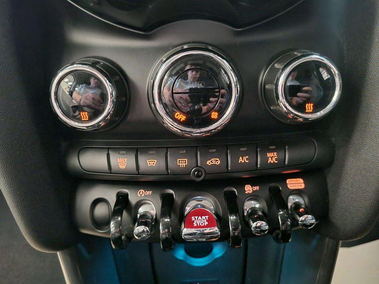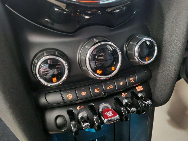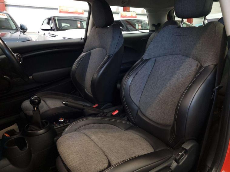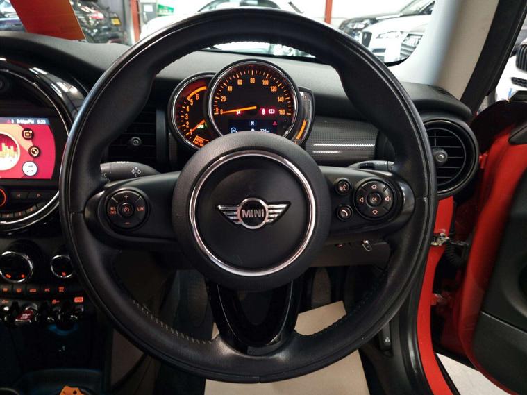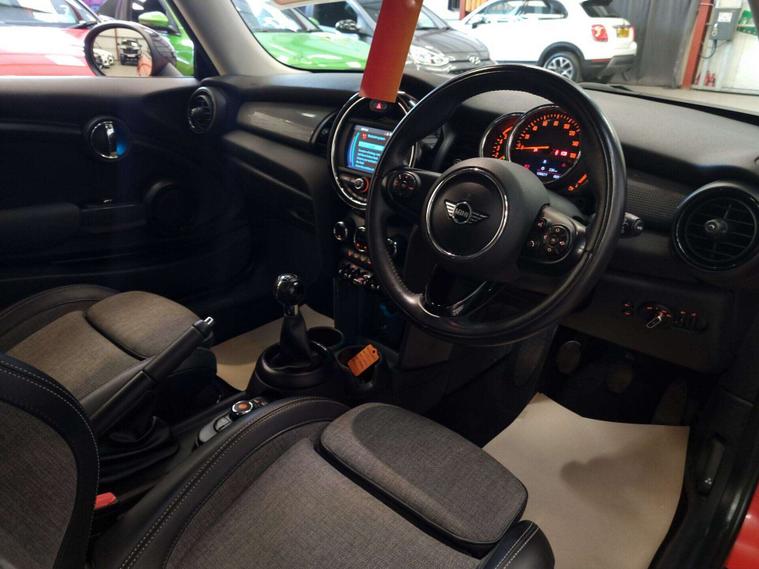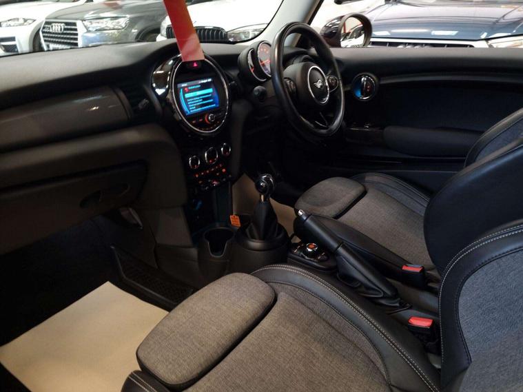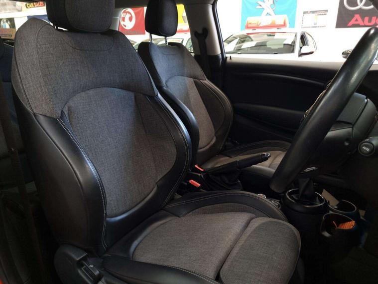 The interior is equipped with automatic dual-zone air conditioning, dual-zone climate control, a MINI Central Display. 2 tone leather and grey cloth seating, Multi-functional steering wheel with a speed limiter, USB and 12v input in the centre. Lastly, bluetooth/handsfree.