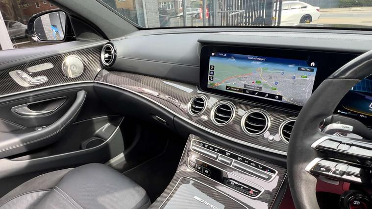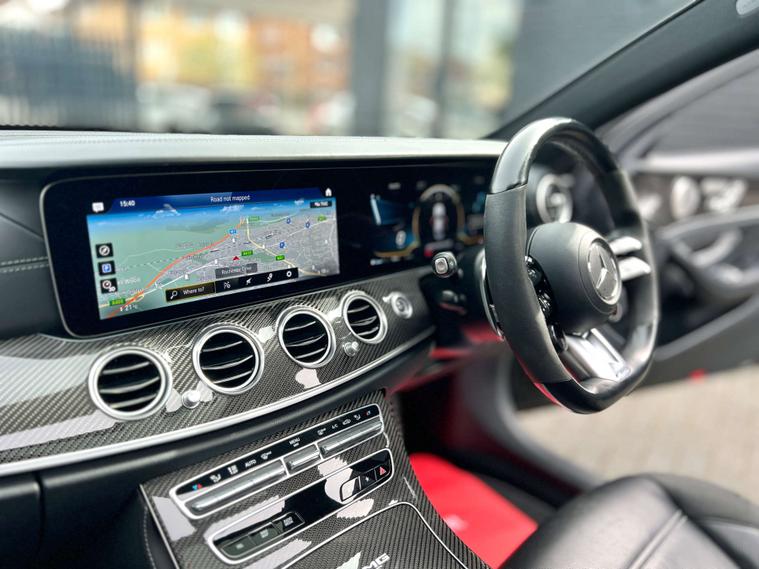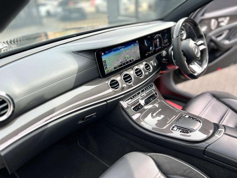 CARBON INTERIOR TRIM + BLACK SPORTS LEATHER + AMG SPORTS EXHAUST + DIGITAL DASH COCKPIT + PANORAMIC GLASS SUNROOF + EXTENDED BODYKIT + KEYLESS ENTRY/ PUSH START BUTTON + CARBON INTERIOR TRIM + BLACKOUT EXTERIOR STYLING + HEATED ELECTRIC SEATS + ARM REST + SAT NAV + APPLE PLAY + BLUETOOTH + DAB RADIO + AUTO/ PADDLES ON STEERING