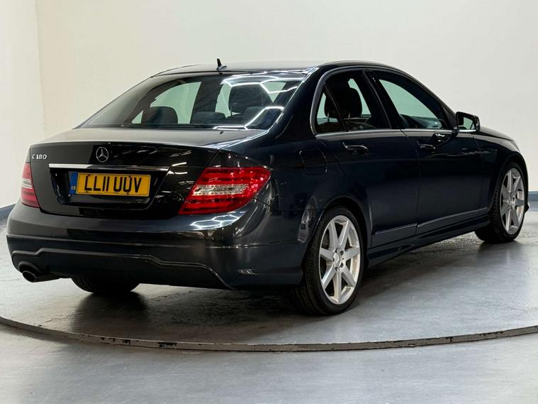 Introducing the stunning Mercedes-Benz C-Class 1.8 C180 Sport BlueEfficiency Auto 4dr. With a sleek black finish and only 62000 miles on the clock, this luxury vehicle exudes style and sophistication.