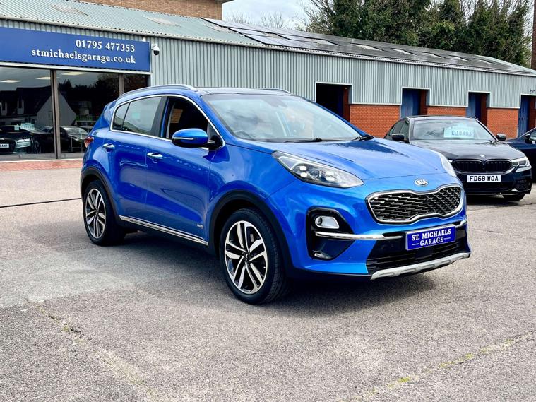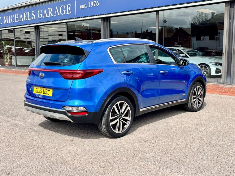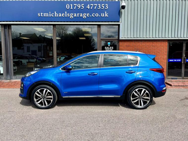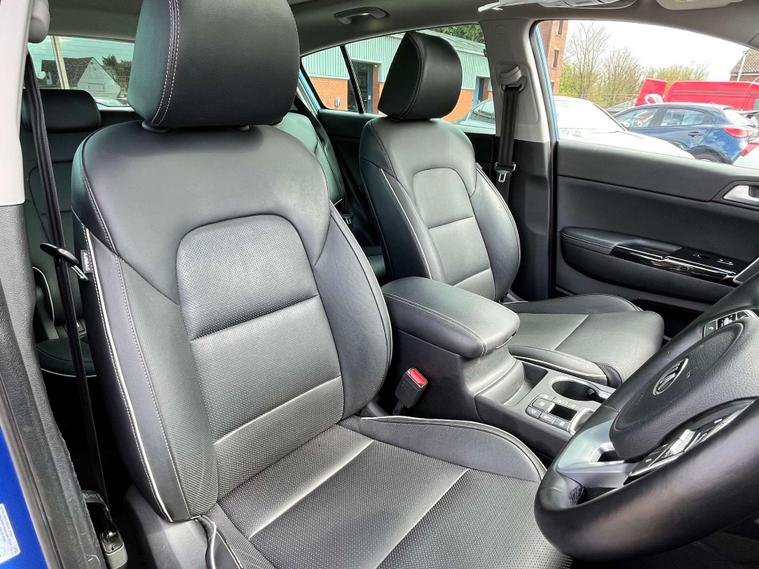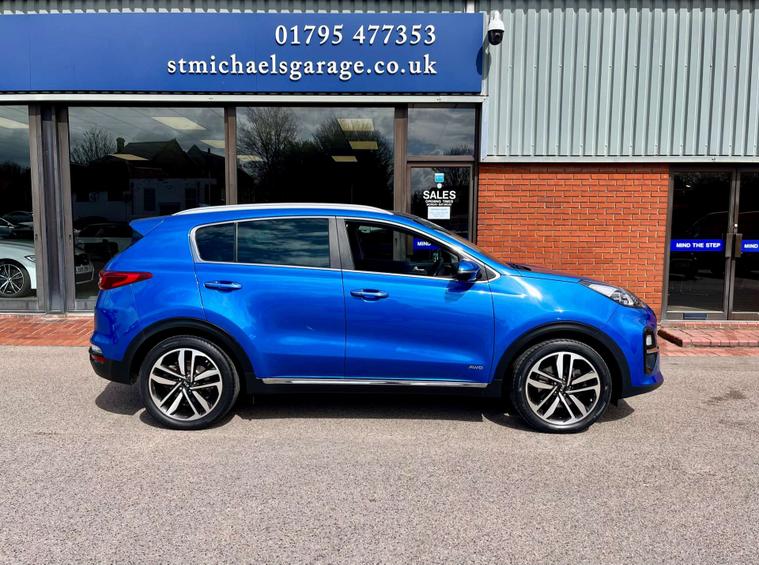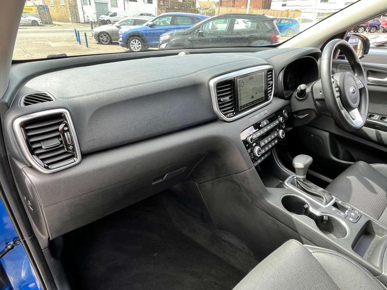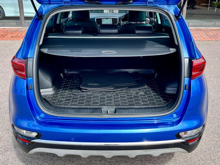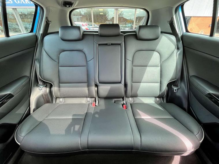 Finished in a striking Blue Flame, the Kia Sportage is sure to turn heads wherever you go. Its sleek and modern design is complemented by a luxurious Black Leather interior, offering both comfort and sophistication for every journey.