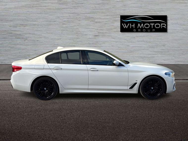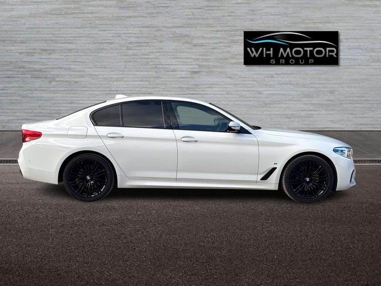 Finished in a stunning Alpine White, this Bmw 5 Series stands out with its sleek and dynamic design. The 19-inch M Light M Double Spoke alloy wheels in black add a touch of sportiness, perfectly complementing the car's elegant silhouette.