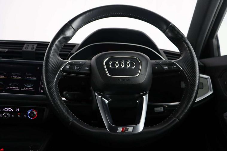 Our Audi Q3 comes with an array of features and has been very well maintained with Service History. This vehicle is equipped with Rear Sensors, Electric Tailgate, Electric Side View Mirrors, Lane Assist, Cruise Control, Speed Limiter, Auto Hold Braking System, Stop/Start, Traction Control System, Navigation, Bluetooth Connection, DAB Radio, Android Auto, Phone Pairing Interface, Electric Windows, A/C Climate Control. This car is ULEZ Compliant and has a part leather part fabric interior.