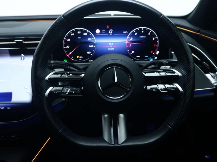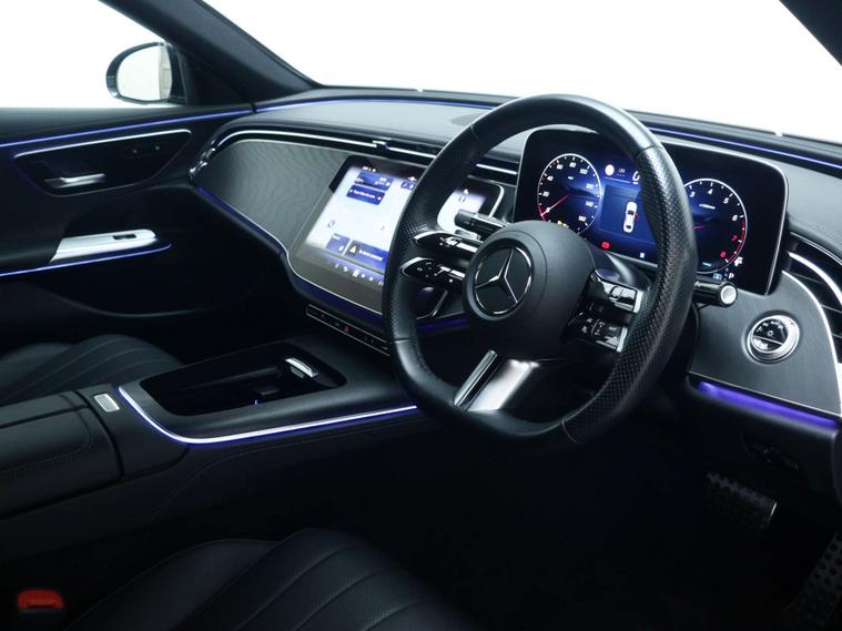 This E Class comes with an excellent standard specification that adds real day-to-day value. You get 18in AMG 5-twin spoke alloy wheels painted in tantalite grey with a high sheen finish, ambient lighting, blind spot assist, front electric windows, heat insulating privacy glass, KEYLESS-GO entry and starting function, THERMATIC two-zone automatic climate control, wireless charging, and wireless smartphone integration via Android Auto or Apple CarPlay. It all adds up to a premium petrol hybrid saloon with the comfort, technology and convenience expected from the Mercedes-Benz badge.