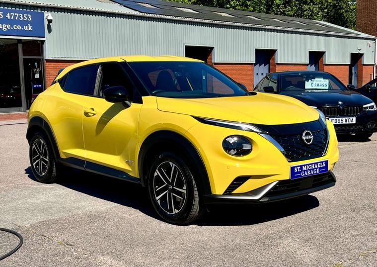 Introducing the stylish and efficient Nissan Juke 1.6 Juke N-Connecta HEV CVT 5dr in eye-catching Iconic Yellow. With only 20278 miles on the clock and just 1 previous owner, this car is in excellent condition and ready to hit the road.