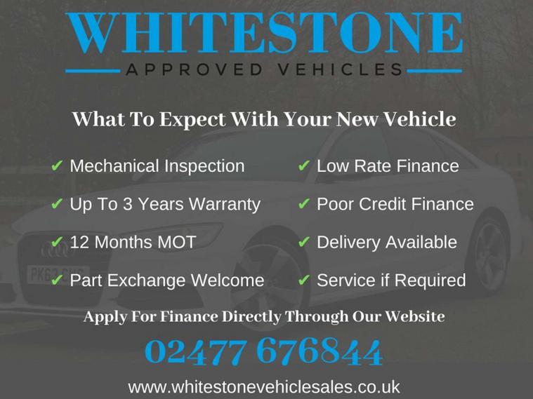 ....RESERVE THIS VEHICLE WITH A FULLY REFUNDABLE DEPOSIT....ZERO DEPOSIT FINANCE AVAILABLE....2 MINUTE APPLICATION AVAILABLE DIRECTLY THROUGH OUR WEBSITE, REGARDLESS OF YOUR CREDIT HISTORY.... EXTENDED WARRANTIES AVAILABLE.... FULLY MOTORCHECK AND EXPERIAN CLEAR.... BUY WITH CONFIDENCE WITH OUR 5 STAR REVIEWS....VIEWINGS BY APPOINTMENT- PLEASE CALL THE OFFICE ON 02477022714