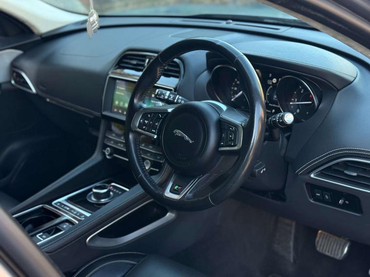 Finished in an elegant Grey, the Jaguar F-pace exudes sophistication and style, turning heads wherever it goes. Its sleek, aerodynamic lines and bold R-Sport detailing make a powerful statement on the road, while the advanced all-wheel-drive system ensures you remain in control, no matter the conditions.