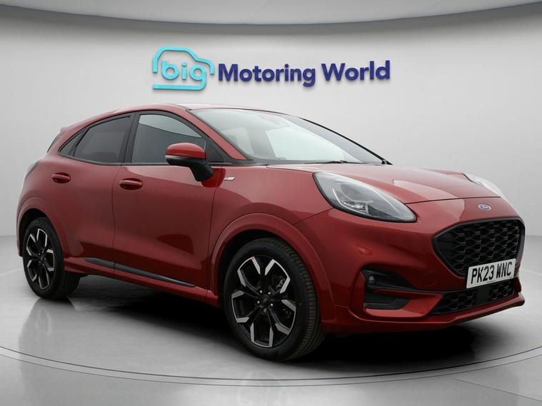 Our Ford Puma is finished in Red. Specification includes a range of fantastic features including Part Leather Seats, Lane Assist, Satellite Navigation, Ford SYNC, Privacy Glass, ST Style Pack, Heated Windscreen, Wireless Phone Charging, Parking Sensors, Flat Bottom Steering Wheel Specification information is supplied by CAPHPI and may vary to the actual car. This data does not form any part of a buying contact. Please check specification prior to purchase in-store visit dealer's website for more photos, a 360 tour, service history and a free HPI report.