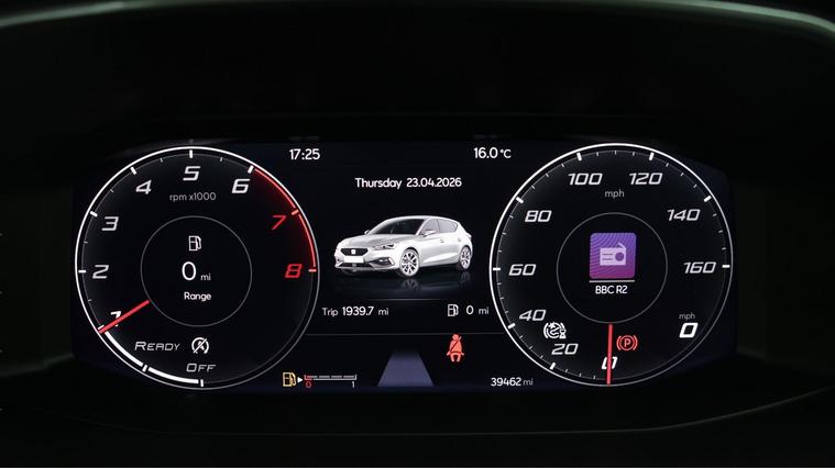Our SEAT Leon is finished in Grey. Specification includes a range of fantastic features including 17'' Alloy Wheels, Apple CarPlay, Digital Cockpit, Lane Assist, Privacy Glass, Bluetooth, Parking Sensors, Flat Bottom Steering Wheel, Cruise Control, Climate Control Specification information is supplied by CAPHPI and may vary to the actual car. This data does not form any part of a buying contact. Please check specification prior to purchase in-store. The MOT is valid until February 2027, visit dealer's website for more photos, a 360 tour, service history and a free HPI report.