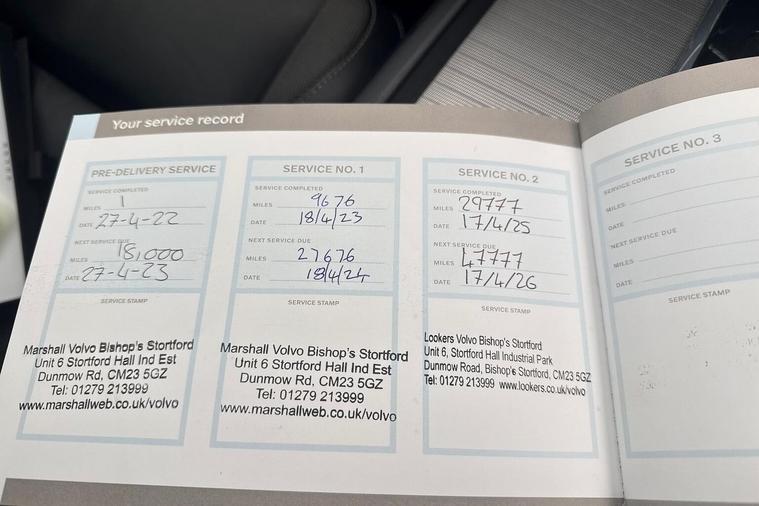 8-speed Automatic transmission. AWD Power Driver's Seat with Memory for Seat Sport Pedals Tailored leather gear shift with contrasting seams 2-Zone Electronic Climate Control Afterrun parking climate Passenger Airbag Cut Off Switch Dual Stage Driver and Passenger Airbags Driver Knee Airbag Charcoal headlining Road Sign Information Driver Alert Control with Lane Keeping Aid R-Design grille with high-gloss black insert Heated grill emblem Full-LED headlights Headlight Cleaning System Front LED Foglights 12-inch driver display Google Automotive Services Cruise Control Head-Up Display in Windscreen (Heated Windscreen will be replaced if HUD is ordered) Adjustable Speed Limiter DAB (Digital Audio Broadcasting) Radio High Performance Sound Autofolding Heated Power Door Mirrors Automatic door locking Door mirror covers. Black Stone Dark Tinted Rear Windows Anti-theft Alarm including Immobiliser. Volume Sensor and Level Sensor Power Operated Tailgate Keyless Drive (includes Keyless Entry and Keyless Start) "CleanZone" Air Quality System and Pollen Filter Digital owners manual Metal Mesh aluminium decor Tailored dashboard Nappa leather/Leatherette/Textile upholstery Power Driver's Seat with Memory for Seat Heated Front Seats Five seats Mechanical release second seat row 4-Way Lumbar Support Sport Textile Mats. Charcoal Load Protection Net Rear centre armrest Illuminated Vanity Mirrors Rear Footwell and Side Step Illumination 12v Socket - Cargo Area Load cover. manual Autodimming Inner & Exterior Mirrors Power Cushion Extension. Driver Braking system Indirect Tyre Pressure Monitoring System (iTPMS) Active chassis with air suspension Oncoming Lane Mitigation Hill Descent Control EBL. Flashing Brake Light and Hazard Warning Heated Steering Wheel Tailored sport steering wheel. Charcoal Adaptive power steering 21? 5-Double Spoke (Diamond-Cut/Black) Temporary mobility kit Locking Wheel Nuts Washer Nozzles Colour coordinated door handles with Illumination and Puddle lights Cargo opening metal scuff plate Volvo tread plates. aluminium Glossy Black Window Trim Roof Rails - Integrated. High Gloss Black All-wheel Drive (AWD) Tempered side windows Front and Rear Park Assist Ticket Holder Rear Park Assist Camera Plastic protection cap Contour front seats Whiplash injury protection system IC (Inflatable Curtains) - Full Length Side impact protection ISOFIX Attachment (Outer Rear Seats) Safety belts Rain Sensor - Automatic Windscreen Wiper Activation Steering Wheel Remote Infotainment Control Humidity sensor Start/Stop technology Bluetooth® Handsfree System