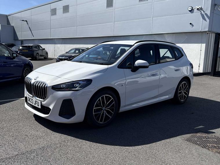 Welcome to BMW Crewe. Alpine white BMW 220i M sport active tourer with a black alcantara/sensatec interior. Additional options on this car include an interior camera, a technology pus pack and preparation for driving assistant plus if required. If you are viewing from a distance let us bring the car to you via video link where one of our BMW experts will demonstrate the car to you on your smart device, allowing you to view the vehicle in the comfort of your own home. Thank you for viewing our advert, we look forward to assisting you further.