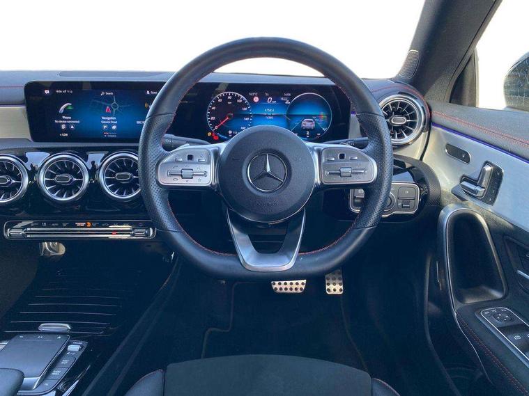 Experience the perfect blend of sportiness, elegance and cutting-edge technology with this exceptional 2023 Mercedes-Benz CLA 200 AMG Line Premium Plus Coupé. With its sleek coupé silhouette, premium interior craftsmanship and the highest-level Premium Plus equipment, this CLA delivers a truly elevated driving experience. AMG Line Premium Plus specification Automatic transmission with smooth, responsive performance Turbocharged petrol engine offering refined power Striking coupé styling with frameless doors Panoramic glass sunroof (Premium Plus feature) Technology & Comfort Digital Instrument Cluster 10.25" MBUX Touchscreen with Navigation Navigation KEYLESS-GO Comfort Package Heated Front Seats 64-Colour Ambient Lighting MBUX Voice Assistant (“Hey Mercedes”) ? Safety & Driver Assistance Active Brake Assist Blind Spot Assist Traffic Sign Assist Reversing Camera Parking Sensors (Front & Rear) LED High-Performance Headlamps Cruise Control with Speed Limiter Exterior & AMG Styling 19" AMG multi-spoke alloy wheels AMG body styling with sport bumpers and side skirts Diamond grille with chrome pins Panoramic roof for enhanced cabin light and visibility LED daytime running lights Sleek coupé profile with premium road presence Mercedes-Benz Approved Used Benefits 12-month unlimited mileage warranty Comprehensive multi-point inspection Full service history checks 12-month roadside assistance