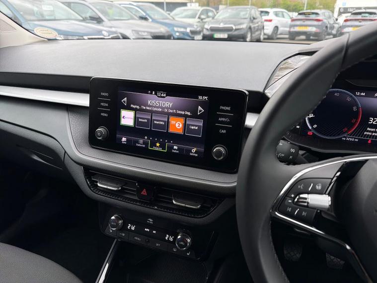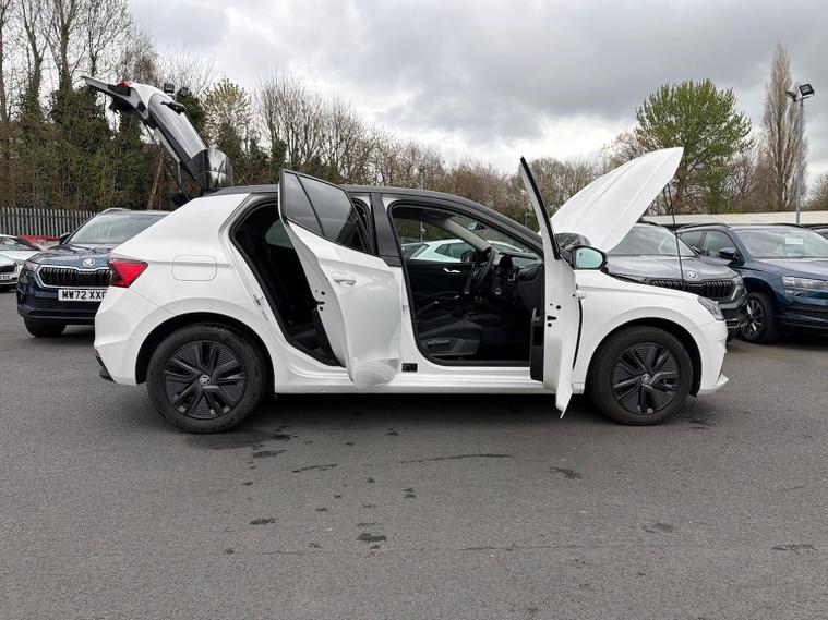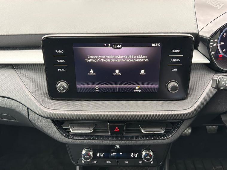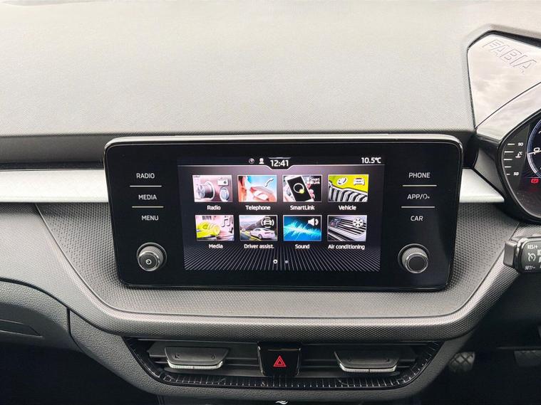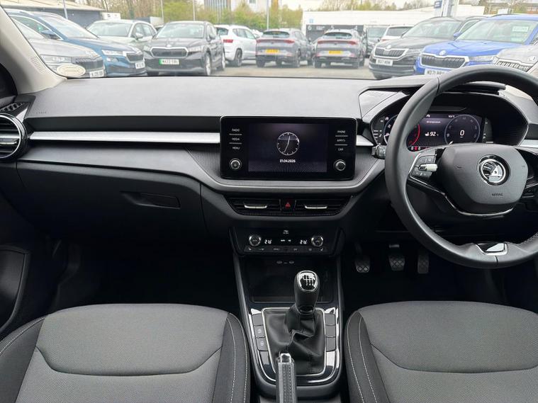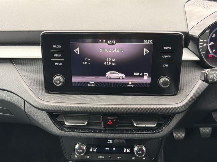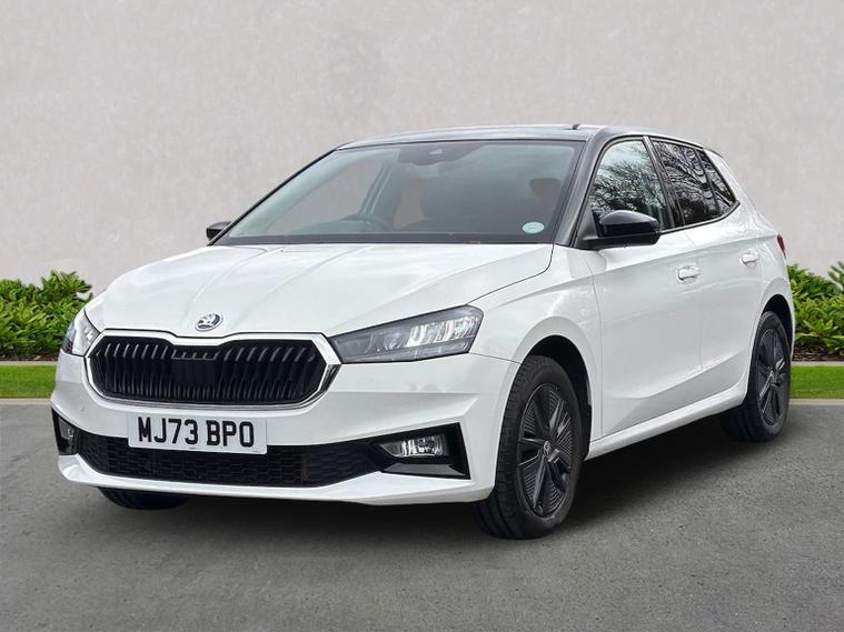 This Skoda Fabia Colour Edition 1.0 TSI 110 PS in Candy White with Black Magic Pearl roof features 16" Proxima black alloy wheels, Bolero 8" touchscreen with DAB, Bluetooth and SmartLink, rear parking sensors, driver alert system, tyre-pressure monitoring, cruise control with speed limiter and dual-zone climate control. The Colour Concept package adds door mirrors painted in roof colour, black radiator grille, black styling elements, privacy glass and matching interior highlights. The Winter Package adds heated front seats, heated windscreen, heated washer nozzles and a heated 2-spoke leather multifunction steering wheel. Additional highlights include LED headlights with LED daytime running lights, front fog lights, electrically adjustable heated mirrors, keyless engine start, virtual cockpit with 10.25" display, height-adjustable front seats, interior satin-black trim, removable cup-holder module, luggage-compartment lighting and an umbrella in the driver door. We offer in-person appointments, personalised video walk-arounds, flexible test-drive availability, and a full range of finance options to support your purchase.