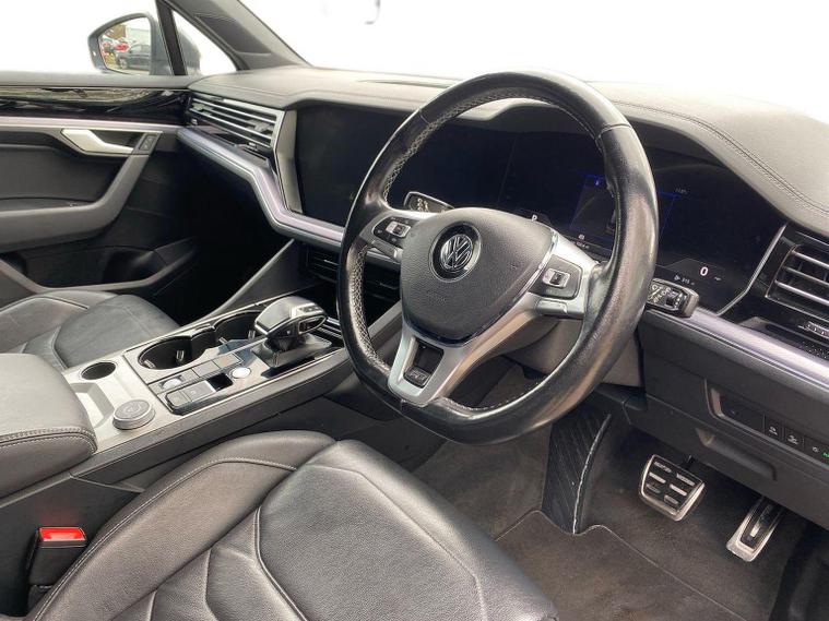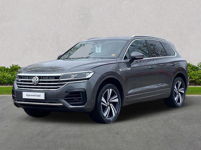 Volkswagen Touareg 3.0 TDI V6 R-Line Tech SUV 5dr Diesel Tiptronic 4Motion Euro 6 (231 ps) Mileage: 61, 475 miles Exterior Colour: Silicon Grey Metallic Interior: R-Line Vienna leather upholstery Description A superb example of the Volkswagen Touareg R-Line Tech — a luxury SUV that combines premium comfort, advanced technology and powerful V6 TDI performance. Finished in striking Silicon Grey Metallic with high-quality R-Line Vienna leather upholstery, this Touareg offers exceptional refinement, a commanding driving position and impressive capability thanks to its 4Motion all-wheel-drive system and smooth Tiptronic automatic transmission. The R-Line Tech model enhances the Touareg’s already high specification with advanced digital instrumentation, enhanced comfort features and a wide array of driver-assistance systems. This is a truly premium SUV that delivers sophistication and practicality in equal measure. Key Features & Equipment Comfort & Convenience Keyless entry and hands-free power tailgate Electrically operated tailgate with foot-sensor opening Power-latching tailgate Panoramic glass sunroof Innovision Cockpit & Technology Large Innovision digital cockpit with customisable high-resolution display Premium satellite navigation system App-Connect with media control Multiple USB connections Wireless smartphone charging Gloss black centre console Advanced infotainment with Radio High Plus Interior & Seating R-Line Vienna leather seats Heated front seats Pneumatically adjustable lumbar support Rear centre armrest with cupholders Mechanical rear seat release Black roof-lining for a sporty interior feel Lights, Vision & Mirrors Automatic LED headlight control with coming/leaving home function Illuminated vanity mirrors Power-folding, heated and auto-dimming exterior mirrors with memory Driver Assistance & Safety Park Assist with reversing camera Adaptive Cruise Control Lane-keeping assistance and traffic assist systems Front Assist emergency braking system 4Motion all-wheel drive for superior traction R-Line Tech Pack Highlights 20" Nevada alloy wheels Sports suspension Privacy glass Stainless steel pedals & scuff plates Silver roof rails R-Line exterior styling & body-coloured bumpers Stainless steel loading-edge protection Heated leather multifunction steering wheel 4-zone climate control High Beam Assist 2026 Volkswagen Approved Used Benefits Included with every Approved Used Volkswagen: 1-year unlimited-mileage warranty 1-year UK & European roadside assistance Comprehensive multi-point inspection by trained Volkswagen technicians Full service-history checks Independent vehicle history & mileage verification Battery health check (EV/hybrid where applicable) 30-day / 1, 000-mile exchange promise 5 days’ complimentary Drive Away Insurance (subject to eligibility)