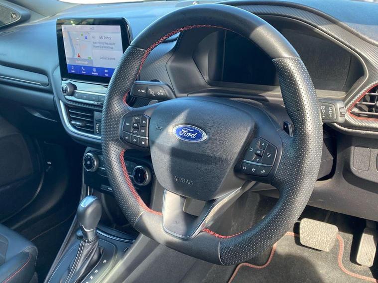 Ford Puma 1.0 EcoBoost Hybrid mHEV ST-Line 5dr DCT The Best-Selling Hybrid: Sporty Design, Smart Tech, and Total Peace of Mind. There is a reason the Ford Puma is a consistent bestseller. It takes everything people love about the Fiesta—agility and fun—and wraps it in a muscular, practical SUV body. This ST-Line model, finished in sporty trim with the seamless DCT Automatic gearbox, is the perfect example of a modern, efficient crossover. With Full Ford Service History and just over 20, 000 miles, this Puma has been maintained exactly as the manufacturer intended. The Highlights Engine: 1.0L EcoBoost mHEV (Mild Hybrid) – Clever self-charging tech that boosts acceleration while keeping your MPG high and CO2 low. Transmission: DCT Automatic – Smooth, rapid gear changes that make stop-start traffic a breeze. Mileage: 20, 768 Miles. Service History: Full Ford Main Dealer History – Documented care from the experts. Trim: ST-Line – The "Sport" look, featuring 17" 5-spoke alloys, a dedicated sports body kit, and sports-tuned suspension for a sharper drive. Clever Features & Technology The Puma is famous for its "hidden" practicality and class-leading tech suite: The Megabox: An 80-litre waterproof storage space hidden under the boot floor—perfect for muddy boots or tall items. SYNC 3 Navigation: 8-inch touchscreen with Full Smartphone Integration (Apple CarPlay & Android Auto). Digital Instrument Cluster: A crisp 12.3-inch digital display that changes its look based on your Drive Mode. Selectable Drive Modes: Choose between Normal, Eco, Sport, Slippery, and Trail to suit the British weather. Safety First: Lane Keeping Aid, Pre-Collision Assist, and Cruise Control all come as standard. Why Choose the Puma ST-Line? If you want an SUV that doesn't feel like a heavy SUV to drive, this is it. It’s nimble, easy to park, and looks fantastic with its "cat-like" LED signature lights. The mild-hybrid system means you don't need to plug it in; it simply harvests energy while you brake to help you save fuel later. Condition: Excellent condition throughout, reflecting its low mileage and main-dealer maintenance record.