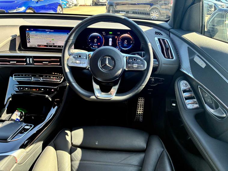 Experience refined electric luxury, powerful performance and unmistakable Mercedes-Benz craftsmanship with this exceptional EQC 400 AMG Line Edition. Delivering an impressive 408?PS through its smooth and responsive all-electric drivetrain, the EQC offers instant torque, whisper-quiet acceleration and a beautifully refined driving experience. The 4MATIC all-wheel-drive system ensures confident handling and outstanding stability in all weather conditions, while the 80?kWh battery provides smooth, efficient power perfectly suited to both daily commuting and longer journeys. Step inside and the EQC surrounds you with premium comfort and cutting-edge technology. The AMG Line Edition enhances the cabin with high-quality materials, stylish trim elements and an elegant, modern layout. A widescreen digital cockpit, advanced infotainment features and ambient lighting create an inviting, contemporary interior that makes every drive feel special. Supportive seats, excellent sound insulation and thoughtful ergonomics ensure smooth, effortless journeys for both driver and passengers. On the outside, the EQC stands out with bold AMG Line styling, sleek LED lighting, sculpted bodywork and dynamic design touches that give it a distinctive and confident presence. Its refined proportions and electric-specific detailing reflect modern Mercedes-Benz innovation while maintaining the premium SUV appeal the brand is known for. Blending powerful electric performance with luxury, comfort and advanced technology, the EQC 400 AMG Line Edition is the ideal choice for those seeking a premium all-electric SUV without compromise. Please call Mercedes-Benz of Stoke on 01782492848 to reserve this vehicle or request a personalised walk-around video!