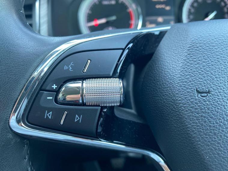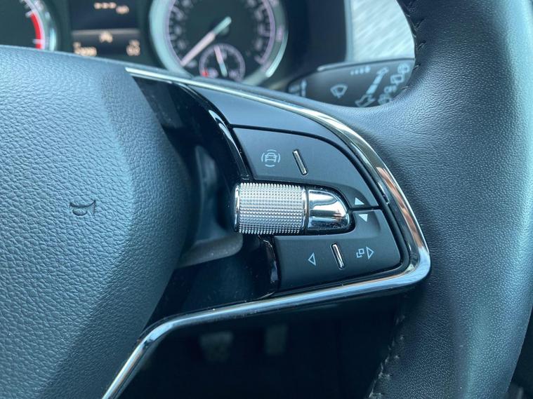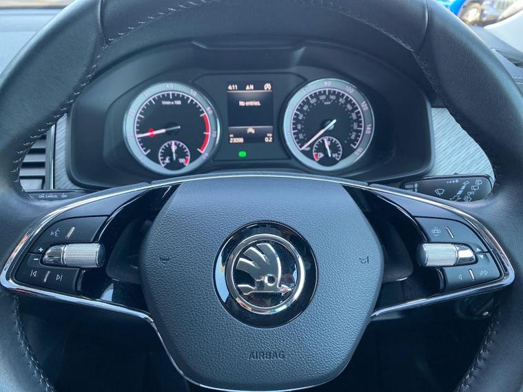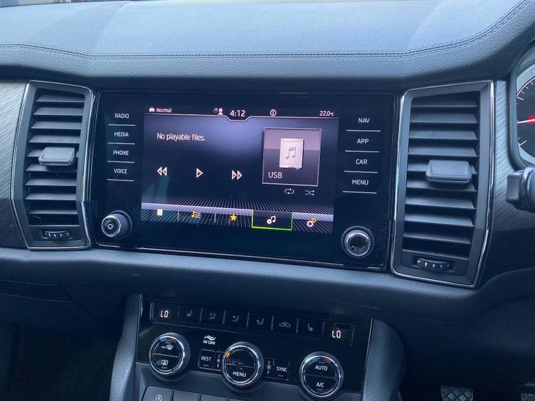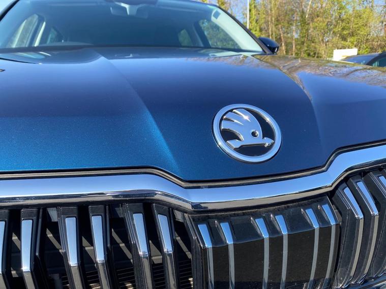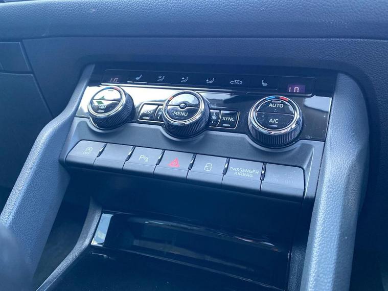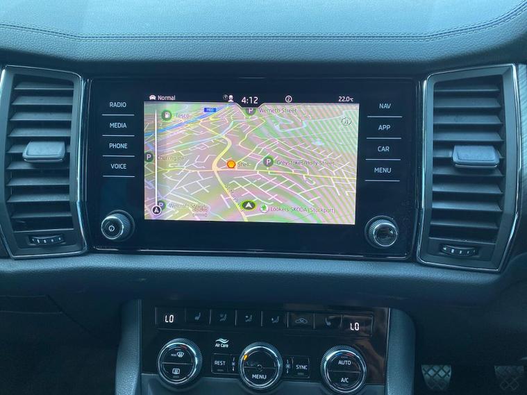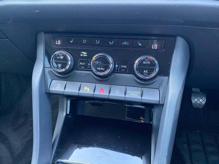 This Skoda Kodiaq SE L Executive 1.5 TSI manual in Petrol Blue Metallic features 19" Cursa anthracite alloy wheels, full black leather upholstery, electrically adjustable driver’s seat with memory and power lumbar support, Amundsen satellite navigation with Wi-Fi, rear-view camera, front and rear parking sensors, cruise control, drive mode selection, light and rain sensors, and an auto-dimming rear-view mirror. Exterior highlights include full LED Matrix headlights with adaptive front light system and dynamic rear indicators, heated folding auto-dimming door mirrors with memory and boarding spots, privacy glass, chrome grille and window surrounds, chrome roof rails and an electrically operated boot. Inside it offers dual-zone climate control, heated front seats, leather multifunction steering wheel, digital multifunction display, illuminated and cooled glovebox, sliding and folding rear seats, variable boot floor, drawer under the front passenger seat and ISOFIX rear seating. We offer in-person appointments, personalised video walk-arounds, flexible test-drive availability, and a full range of finance options to support your purchase.