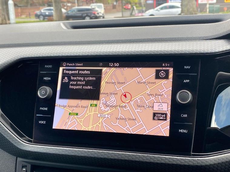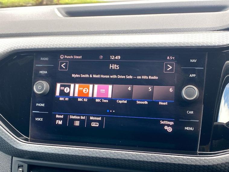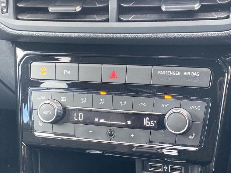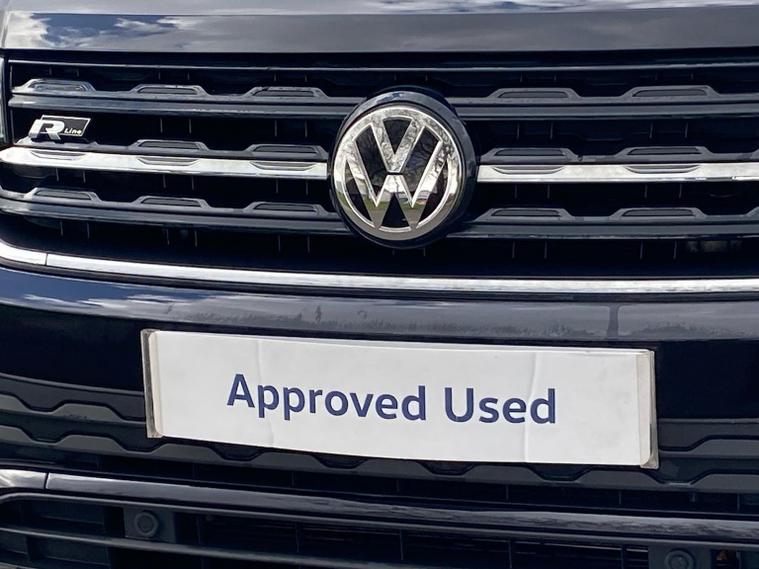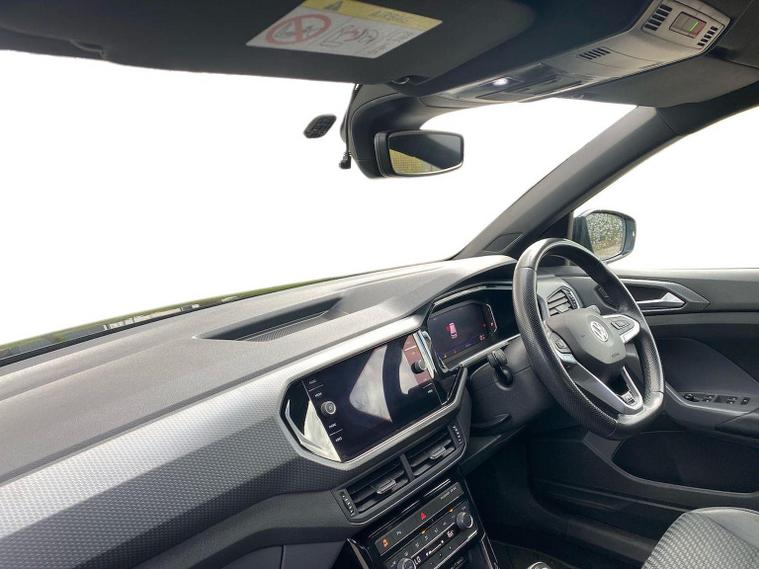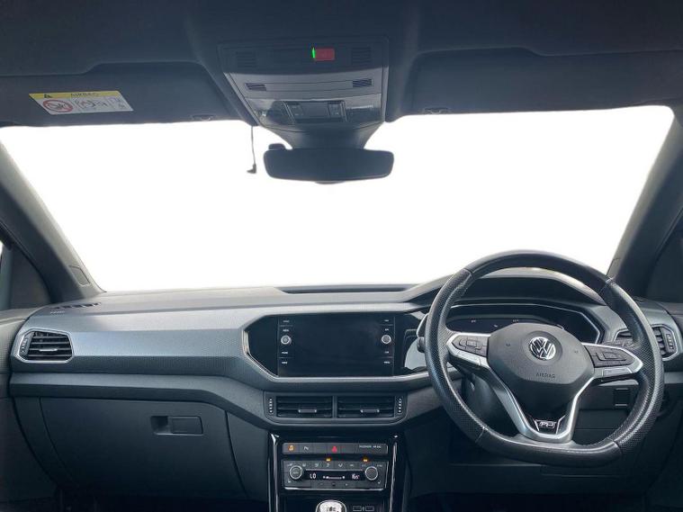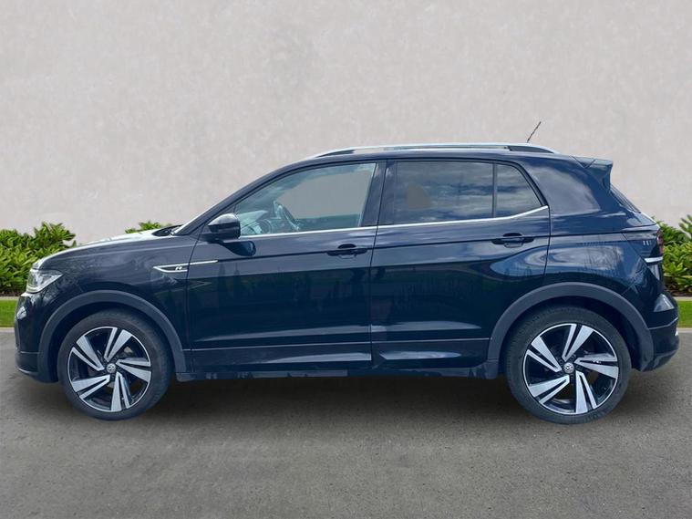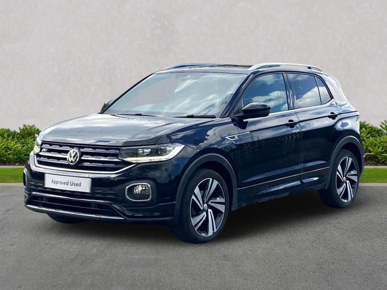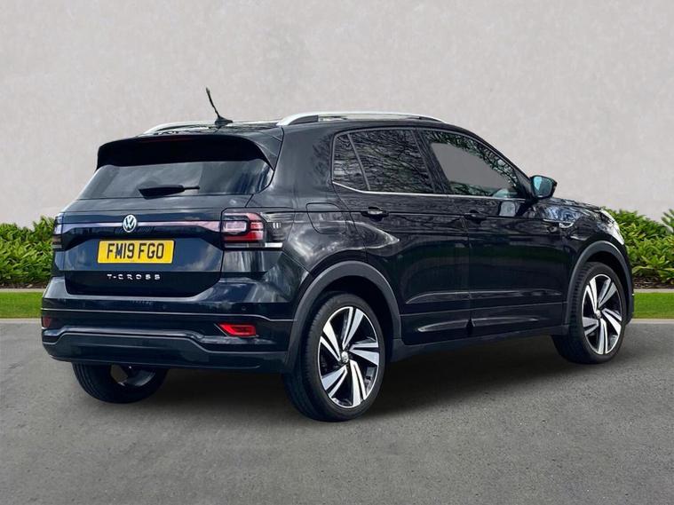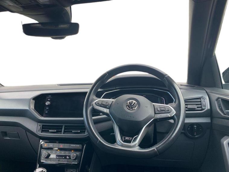 Volkswagen T-Cross R-Line 1.0 TSI 115PS finished in Deep Black Pearl with R-Line interior upholstery, showing 48, 240 miles and offering a sporty, highly equipped compact SUV with strong presence and everyday usability. The exterior is enhanced further by black mirror housings and striking 18" Nevada alloy wheels, alongside R-Line bumpers, black roof lining and branded scuff plates, giving the car a distinctive, athletic appearance. Rear privacy glass completes the look and adds extra practicality for passengers. Inside, the T-Cross R-Line benefits from the Active Info Display, leather-wrapped R-Line multifunction sports steering wheel, decorative inserts, carpet mats and sports-style fabric seats. The Composition Media system with an 8" touchscreen includes DAB, Bluetooth, App-Connect, USB interfaces and six speakers, while Discover Navigation with SD card mapping and Car-Net ‘Guide & Inform’ with a three-year subscription adds enhanced connectivity and online features. Climate comfort is boosted with 2-Zone electronic air conditioning and the Winter Pack providing heated front seats, heated washer nozzles and a washer fluid level indicator. Driver assistance is extensive, including a rear-view camera, Park Distance Control front and rear with Park Assist steering support, Front Assist with City Emergency Braking, Adaptive Cruise Control, Lane Assist, Side Assist, Travel Assist semi-automated driving, Keyless entry with push-button start and an alarm with interior monitoring. Additional convenience comes via automatic headlights, Coming/Leaving Home lighting, rain sensor and an auto-dimming rear-view mirror. Powered by the responsive and efficient 1.0 TSI 115PS engine paired with a 6-speed manual gearbox, the T-Cross R-Line offers a lively yet economical drive with the elevated seating position and practicality expected from an SUV. A stylish, sporty and highly equipped example with a strong specification and excellent everyday versatility.