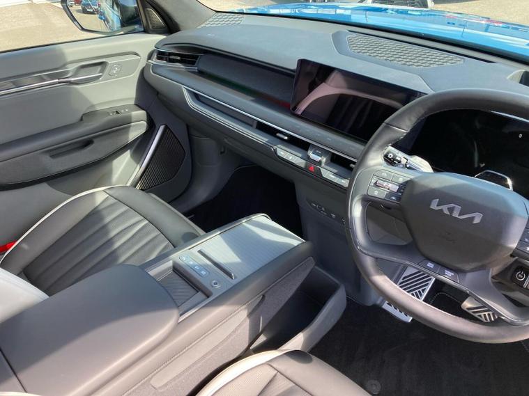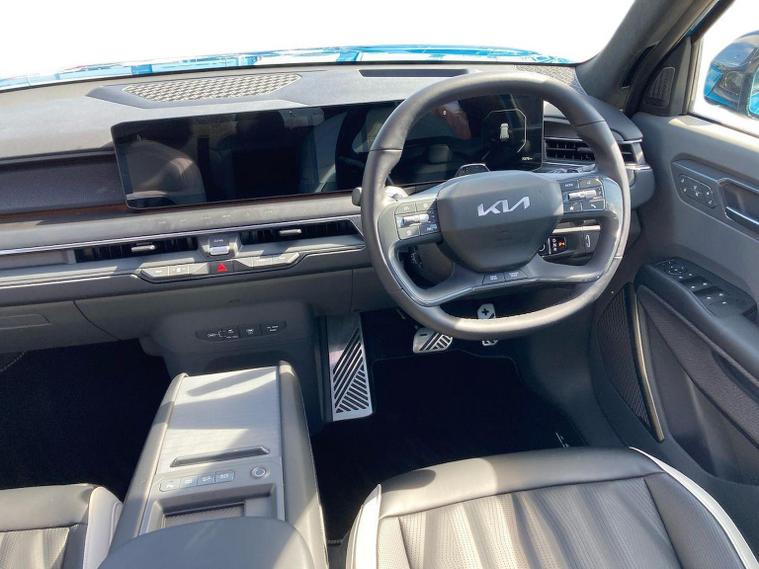 Ex Demo - VAT Q - Huge Spec This electric, four wheel drive SUV offers a spacious interior with seven seats, making it ideal for families or those needing extra capacity. Its substantial 99.8kWh battery provides a maximum range of 313 miles when new, and for your peace of mind, it comes equipped with advanced safety features including Blind-Spot Collision Avoidance Assist with Rear Cross Traffic Assist, and a Blind-spot View Monitor. Comfort is assured with dual zone air conditioning for both the front and second rows, complemented by automatic headlight control. The Kia EV9 GT-Line S truly stands out with its impressive performance and charging capabilities. The 0-62mph acceleration in just 5.3 seconds demonstrates its dynamic power, a figure that places it ahead of many comparable vehicles. When it comes to recharging, the fastest public charging time can take the battery from empty to 80% in a swift 27 minutes, significantly reducing downtime. Furthermore, this capable SUV has a towing weight of 2500 kg, offering versatility for a range of needs.