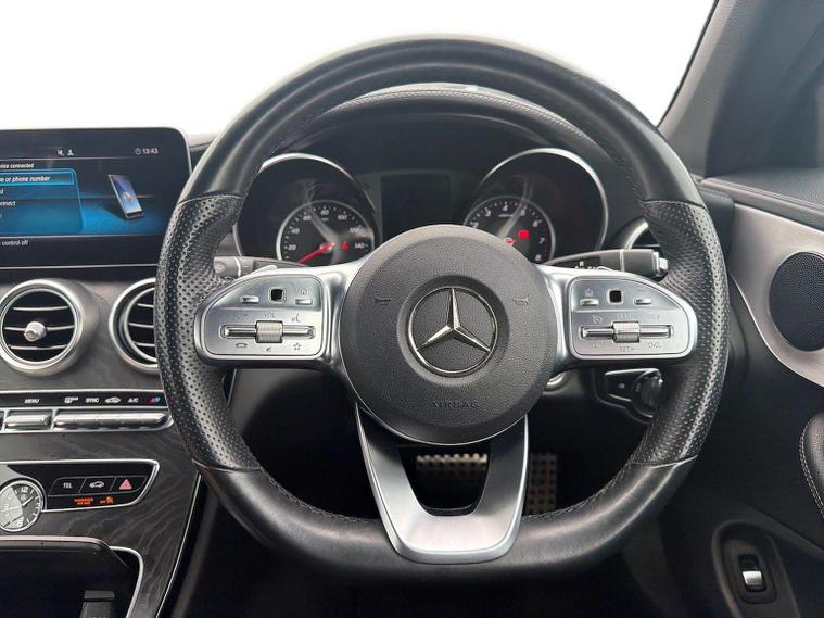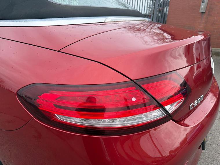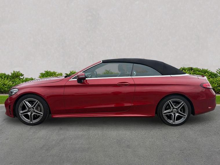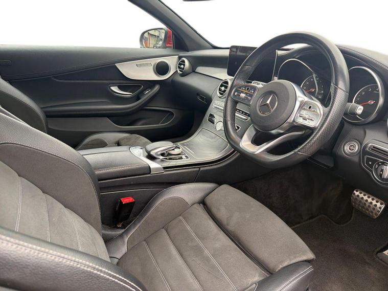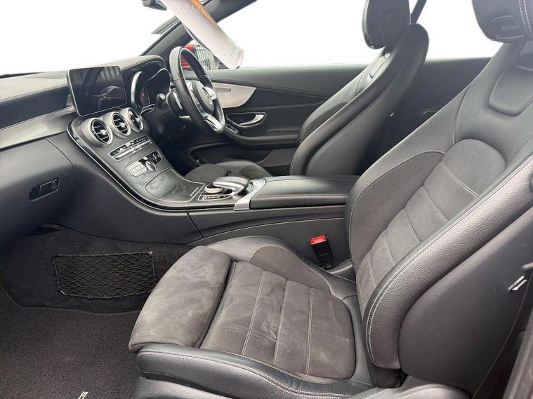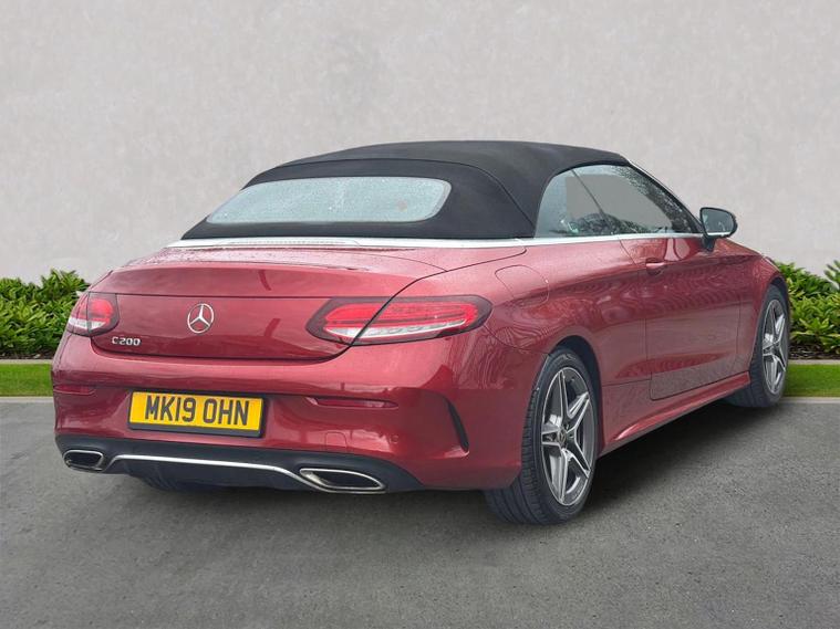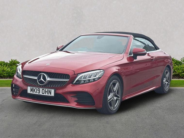 The 2019 Mercedes-Benz C200 MHEV AMG Line Cabriolet features a turbocharged petrol engine with mild-hybrid EQ Boost, 9G-TRONIC+ automatic transmission, and distinctive AMG styling. Key features include the AIRSCARF neck-level heating, AIRCAP wind deflector, 18-inch AMG alloy wheels, LED high-performance headlamps, and a 10.25-inch infotainment display. Key Features (2019 Model Year): Engine & Performance: MHEV (Mild Hybrid Electric Vehicle) with a starter/alternator for improved efficiency and energy recovery, delivering roughly (pre-facelift/facelift blend) and torque. Transmission: 9G-TRONIC PLUS 9-speed automatic transmission. AMG Line Styling: AMG bodystyling (front/rear apron), 18-inch AMG 5-spoke alloy wheels, diamond grille with chrome pins, and sports suspension. Convertible Comfort: AIRSCARF neck-level heating system, AIRCAP wind deflector/draught stop, and an acoustic soft-top. Interior & Technology: Heated sports seats (leather), 10.25-inch central display, SD card-based navigation, DAB radio, Ambient Lighting, and 3-spoke multifunctional AMG steering wheel with touchpad controls. Safety & Security: Active Parking Assist with PARKTRONIC, reversing camera, LED high-performance headlamps, Collision Prevention Assist Plus, and Attention Assist. Optional Packages: Commonly found with the Premium or Premium Plus packages, which add features like 12.3-inch digital instrument cluster, 360-degree cameras, and Keyless-Go.