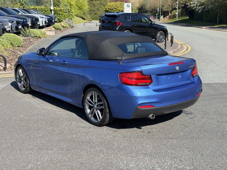 Thank you for viewing this great spec 218d M Sport Convertible available from our BMW site in Stoke-On-Trent. Finished in stunning Estoril Blue paint and Black Dakota leather Interior with all the great specification you expect from a BMW that includes; 18” Alloys, Cruise Control, Convertible Comfort package. Why Choose Lookers BMW Stoke? As with all BMW approved Vehicles there are a host of additional reasons of why to choose Lookers BMW to supply you with your next vehicle which include: • Minimum 12 Month unlimited Mileage BMW warranty • Independent, Certified check to verify vehicle history and mileage • Only Genuine BMW parts used – most with a 2 year warranty • Meticulous checks carried out by our qualified BMW Technicians • Minimum Of 12 months BMW road side assistance • BMW Accident support If you are viewing from a distance let us bring the car to you via video link one of our BMW experts will demonstrate the car to you via a link to your smart device so you can view the vehicle in the comfort of your own home with the family! Please feel free to browse our review centre at google with over 1500 reviews at 4.5 stars ! We have an extensive selection BMW’s available and have access to a huge selection of vehicles across our group. Whatever you are looking for we will endeavour to find for you.