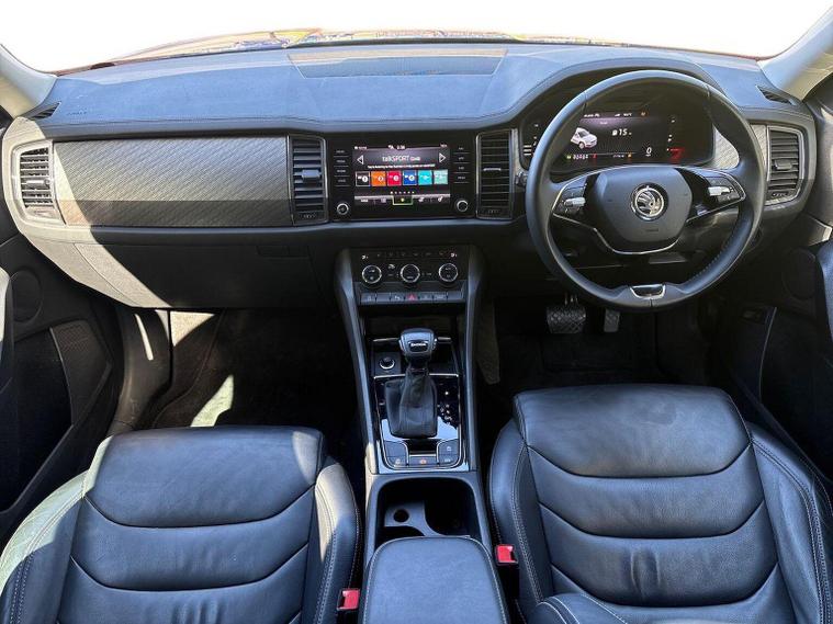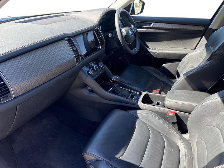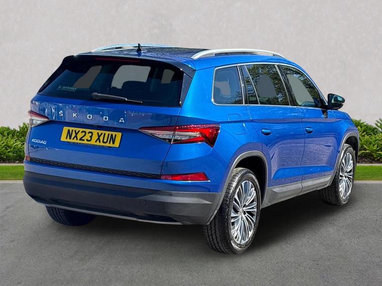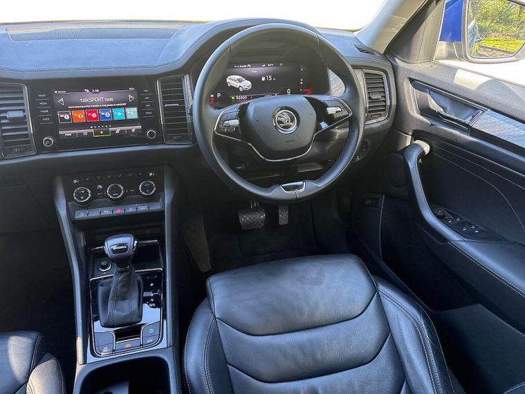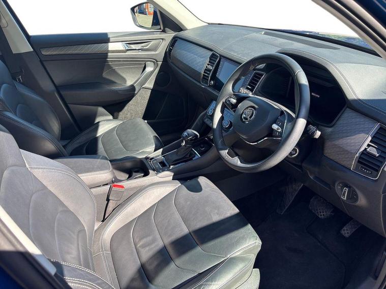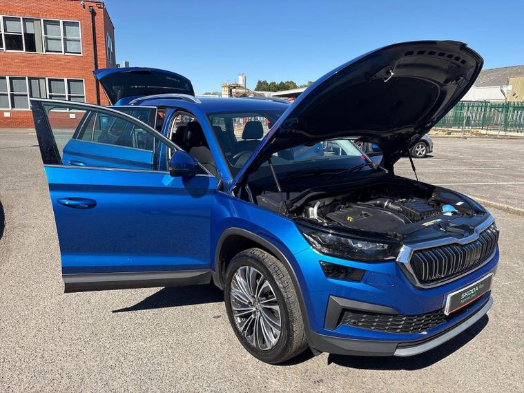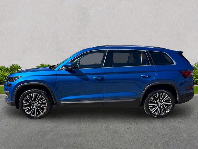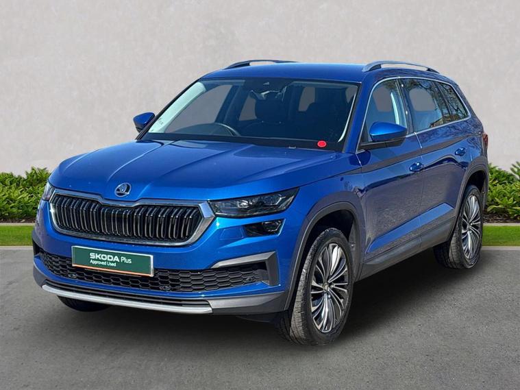 Introducing the stunning 2023 Skoda Kodiaq 1.5 TSI ACT SE L Executive SUV, now available at Lookers Skoda Guildford. This remarkable vehicle, finished in a striking blue, is designed to impress with its spacious seven-seat configuration and a host of premium features. With 1 previous owner and a mileage of just 21, 652 miles, this car is in excellent condition and ready for its next adventure. The Kodiaq is equipped with a powerful petrol engine and an automatic transmission, ensuring a smooth and enjoyable driving experience. You'll appreciate the convenience of features such as a power tailgate, front and rear parking sensors, and heated seats. The vehicle also boasts advanced technology, including satellite navigation, Bluetooth connectivity, and compatibility with Apple CarPlay and Android Auto. Safety is paramount, with collision detection, ABS, and Isofix mounting points for child seats, making it an ideal choice for families. At Lookers, we pride ourselves on our commitment to customer satisfaction. With over 100 years of experience, our dedicated team is here to assist you in finding your perfect vehicle. We offer a comprehensive 12-month warranty on this Kodiaq, ensuring peace of mind with your purchase. Our dealership also provides a full range of aftersales services, including vehicle servicing and parts availability. Don’t miss out on this exceptional Skoda Kodiaq. Contact us today to arrange a test drive and experience the quality for yourself!