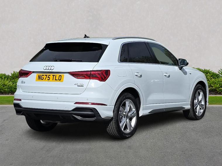 Reference: NG75TLO. Tyneside Audi are offering a rare opportunity to own this AUDI Q3 40 TDI quattro S Line S Tronic. This vehicle was registered by us as a demonstrator & has been maintained in accordance with the manufacturers recommendations. The vehicle is now being readied for sale & as such represents a strong saving against the price of purchasing this as a brand new vehicle. As a demonstrator the mileage may be different to that advertised. Please check with us to confirm the current mileage. - In accordance with the manufacturers requirement, this vehicle is sanctioned for handover from MAY. ===================================================================== A compact SUV with space, comfort, and versatility. The Q3 features upscale materials, MMI infotainment, and a strong road presence. Ideal for small families or those upgrading from a hatchback to a premium crossover.Standard features on this car include Integrated SATELLITE NAVIGATION with real-time routing and traffic updates. CLIMATE CONTROL which automatically regulates cabin temperature for you. VIRTUAL COCKPIT so that you can customise the digital dashboard with maps, gauges, and media. CRUISE CONTROL to maintain a steady speed without constant pedal input. REAR PARKING SENSORS to warn of objects behind while reversing. PART LEATHER combining leather with cloth for a balanced premium interior. Plus lots more. - As a VAT Qualifying vehicle it has the additional benefit to VAT Registered individuals or companies buying the car solely for business use, as they could reclaim the 20% VAT from the purchase price. ===================================================================== 150 MULTI POINT CHECK | AUDI PARTS |FACTORY TRAINED TECHNICIANS 12 MONTH MANUFACTURER BACKED WARRANTY & ROADSIDE ASSISTANCE. AUDI CONNECTED|HISTORY CHECKS ===================================================================== Lookers are an authorised representative for a wide range of award-winning car manufacturers, providing you with an unparalleled choice of quality and approved used cars, currently for sale. Our exceptional standards ensure you receive the best possible service when you purchase with us, ensuring peace of mind when you drive away with your new vehicle. With us representing so many great brands we are an an excellent position to offer you a fair and transparent price for your part exchange. - Our demonstrators & courtesy vehicles by nature are made available to our customers to experience the product or for help getting around whilst with us for aftersales work and as such could have had multiple users. At Lookers, we care about our customers and want to ensure that the price you see is the price you pay. Our Transparent pricing policy simply means, honest, straightforward pricing offering our vehicles at the best price possible; ensuring no haggling or hassle for you.