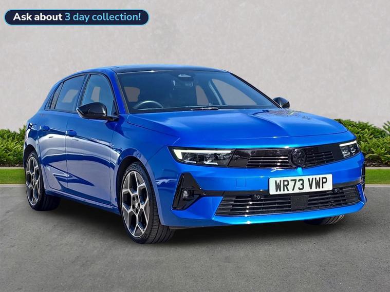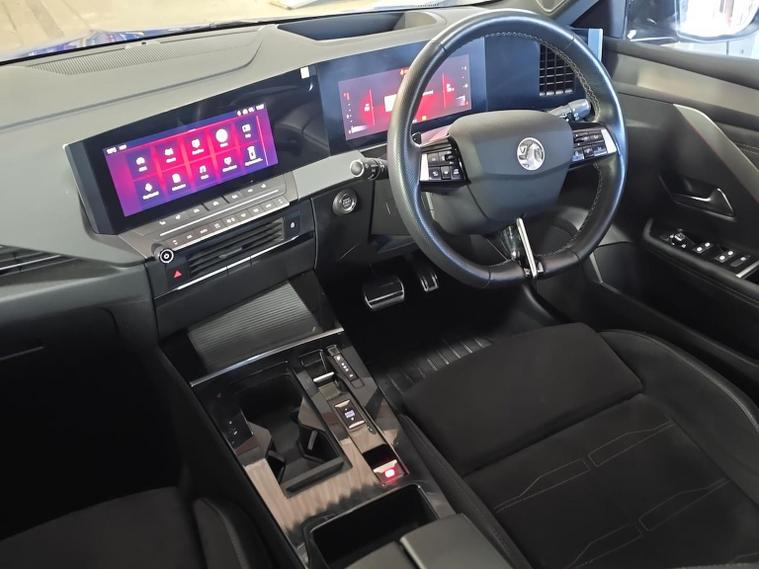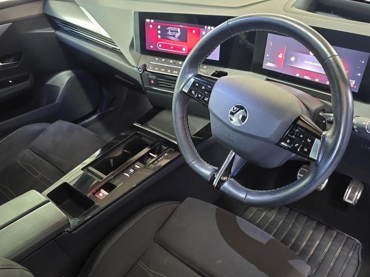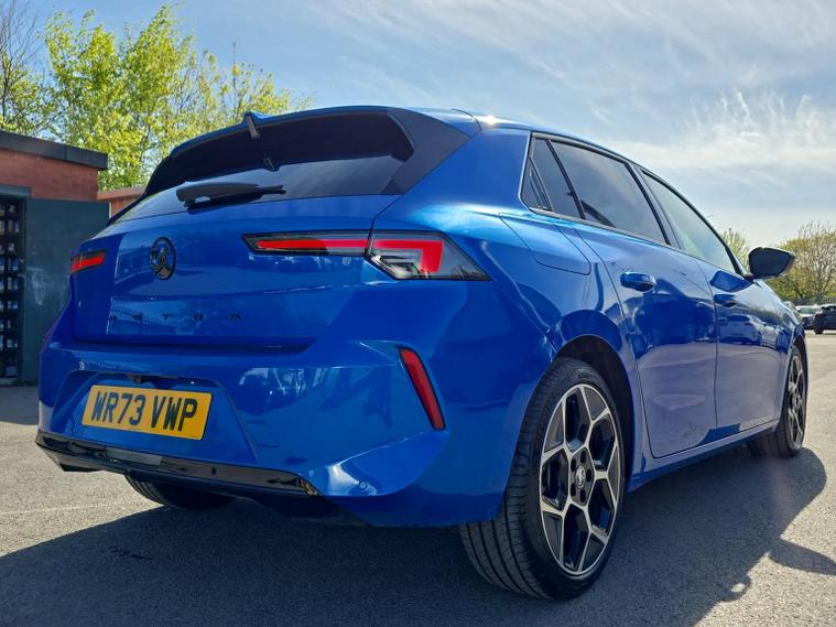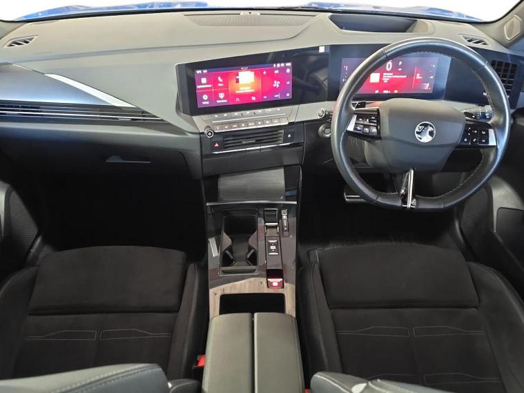 Vauxhall Astra 1.2 Turbo Ultimate Hatchback 5dr Petrol Auto Euro 6 (s/s) (130ps) 2024 – This latest-generation Astra Ultimate combines sharp, modern styling with impressive performance and a premium level of equipment, powered by a smooth and responsive 1.2 turbo petrol engine paired with an effortless automatic gearbox that delivers a refined and relaxed driving experience in all conditions. The Ultimate specification represents the very top of the Astra range, offering matrix IntelliLux LED headlights for outstanding night-time visibility without dazzling other drivers, striking alloy wheels, a contrasting black roof and sleek exterior detailing that really set it apart on the road. Inside, the cabin feels thoroughly upmarket with supportive heated seats trimmed in high-quality materials, a heated steering wheel for cold mornings, ambient lighting and the impressive Pure Panel digital cockpit, which combines a large driver display with a central touchscreen featuring satellite navigation, Apple CarPlay and Android Auto for seamless smartphone integration. Comfort and convenience are further enhanced with dual-zone climate control, keyless entry and start, wireless phone charging, front and rear parking sensors with a rear-view camera, and adaptive cruise control, making longer journeys effortless and stress-free. Safety is equally strong with advanced driver assistance systems including lane keep assist, traffic sign recognition, autonomous emergency braking and blind spot monitoring, giving added confidence for everyday driving. Euro 6 compliant with stop/start technology, this Astra Ultimate delivers an excellent balance of performance, efficiency, technology and comfort, making it an ideal choice for drivers seeking a modern, well-specified and stylish family hatchback.