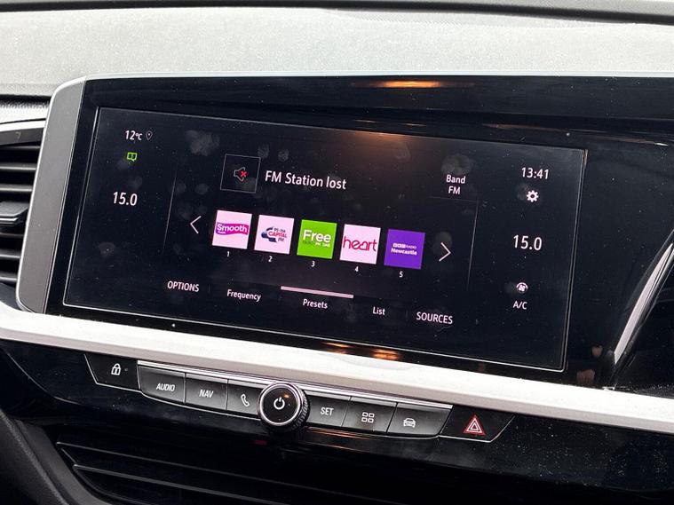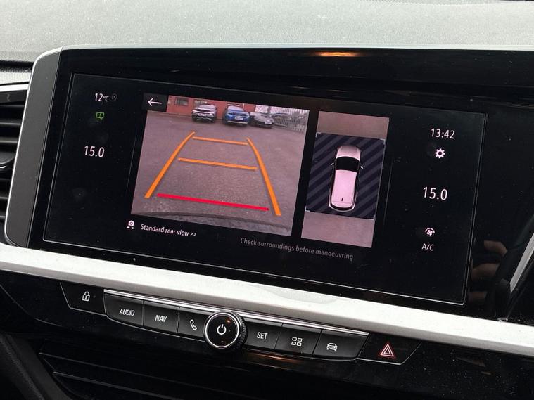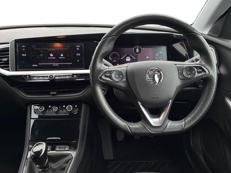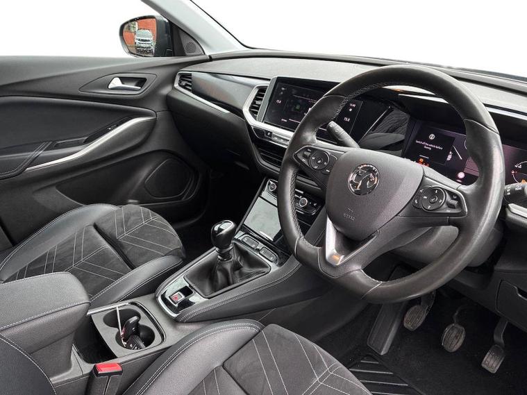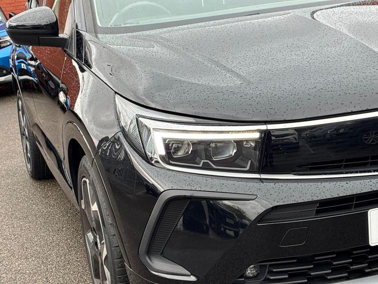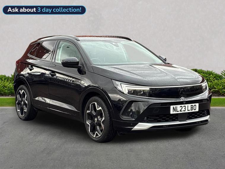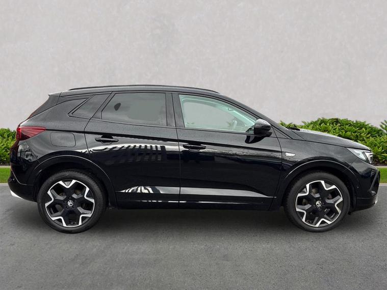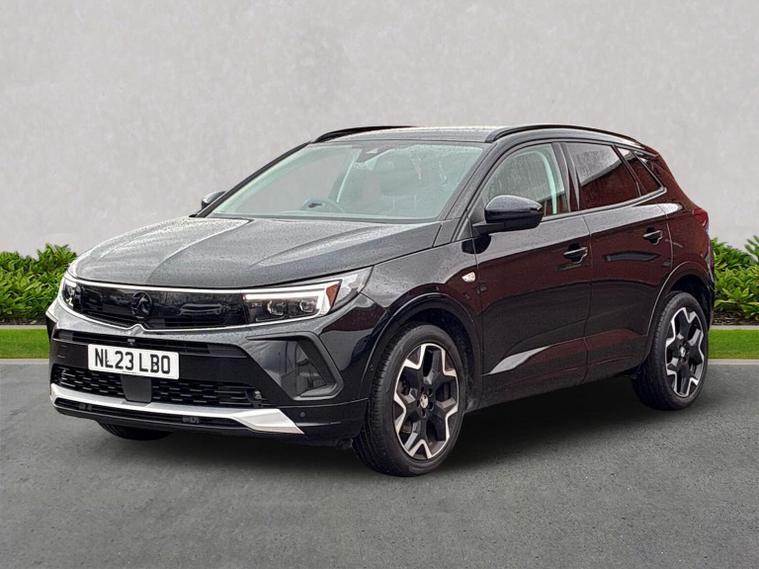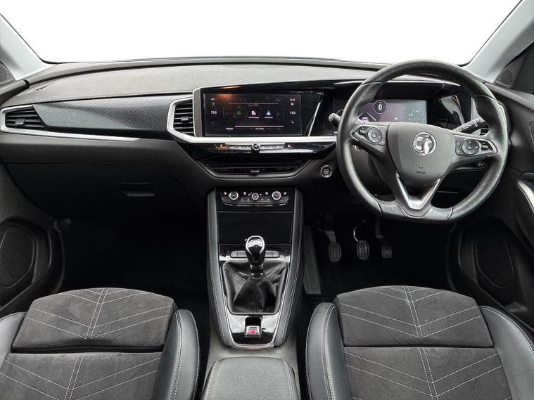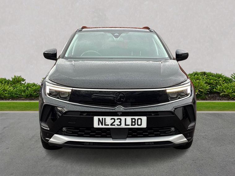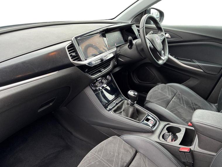 The Vauxhall Grandland 1.2 Turbo Ultimate SUV 5dr Petrol Manual 2023 is the top-tier trim of the range, combining a 130 PS turbocharged engine with a comprehensive suite of premium features. Key Performance Specifications Engine: 1.2-litre 3-cylinder turbocharged petrol (130 PS / 128 BHP). Transmission: 6-speed manual gearbox. Performance: 0–62 mph in approximately 10.4 seconds with a top speed of 122 mph. Efficiency: Combined fuel economy of roughly 44.1–46.3 mpg (WLTP). Exterior Features Vauxhall Vizor: A signature front-end design that integrates the headlights and emblem into a single gloss black panel. IntelliLux LED Pixel Headlights: Advanced adaptive headlights with 84 LED bulbs per unit to prevent dazzling other drivers while maintaining high-beam visibility. Styling: 19-inch diamond-cut bi-colour alloy wheels, black roof with high-gloss black roof rails, and dark-tinted rear windows. Convenience: Power-operated tailgate with a foot-swipe sensor for hands-free opening. Interior & Technology Pure Panel Display: A dual-screen setup featuring a 12-inch digital instrument cluster and a 10-inch colour touchscreen for infotainment. Connectivity: Multimedia Navi Pro system with satellite navigation, wireless Apple CarPlay, Android Auto, and a wireless phone charger. Comfort: Heated front "Ergonomic Active" sports seats (AGR-approved), a heated flat-bottomed leather steering wheel, and dual-zone electronic climate control. Upholstery: Premium interior finished with black Alcantara seat inserts and leather-effect side bolsters. Safety & Driver Assistance 360° Panoramic Camera: Provides a full overhead view of the vehicle to assist with parking and low-speed manoeuvres. Advanced Park Assist: Automatically identifies suitable parking spaces and handles steering while the driver controls speed and braking. PureSense Suite: Includes automatic emergency braking with pedestrian detection, lane keep assist, side blind spot alert, and traffic sign recognition. Keyless Entry/Start: High-security keyfree system for easier access and ignition