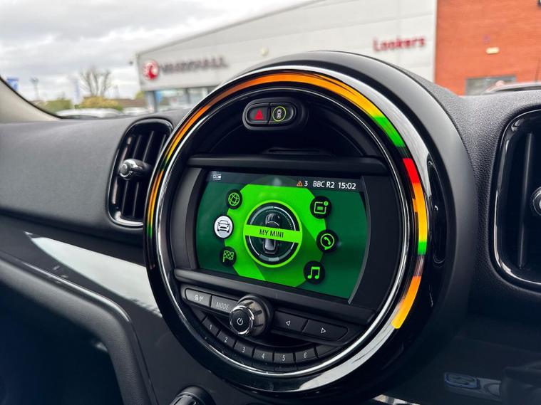 The 2026 MINI Countryman 1.5 Cooper Classic SUV is a 5-door petrol automatic subcompact crossover (136 PS), offering a 1.5L turbocharged engine, automatic Steptronic transmission, and front-wheel drive (or ALL4). Key features include LED headlights, 16/17-inch alloy wheels, a 6.5-inch touchscreen with navigation/Apple CarPlay, rear camera with parking sensors, heated seats, and a powered tailgate. Key Features & Specification Engine & Performance: 3-cylinder petrol engine ( ), 0-60 mph in seconds, and a top speed of Transmission: Automatic Steptronic (often DCT) with gear-shifting paddles. Exterior: LED headlights, LED daytime running lights, fog lights, roof rails, and rear-view camera. Interior & Comfort: Heated cloth seats (Firework Carbon Black), dual-zone climate control, leather multifunction steering wheel, and ambient interior lighting. Technology & Infotainment: 6.5" screen with Navigation Pack, DAB radio, Bluetooth streaming, and Mini Connected services. Safety: Active Guard (forward collision warning/auto braking), parking assistant, speed limit info, and 5-star NCAP rating. Optional Packages (Often Included): "Comfort Pack" (heated seats, front armrest) and "Nav Pack". Interior & Practicality Seating: 5 seats with 40:20:40 split-folding rear seats for versatile loading. Storage: Large boot capacity ( litres when folded) with a multi-level floor, plus 12V and USB power points. Driving Aids Parking Assistant: Visual and audio aids for parking, including a rear-view camera. Modes: Driving modes (Sport, Mid, Green) to alter fuel efficiency and throttle response. Driver Assistant: Cruise control with braking function and automatic