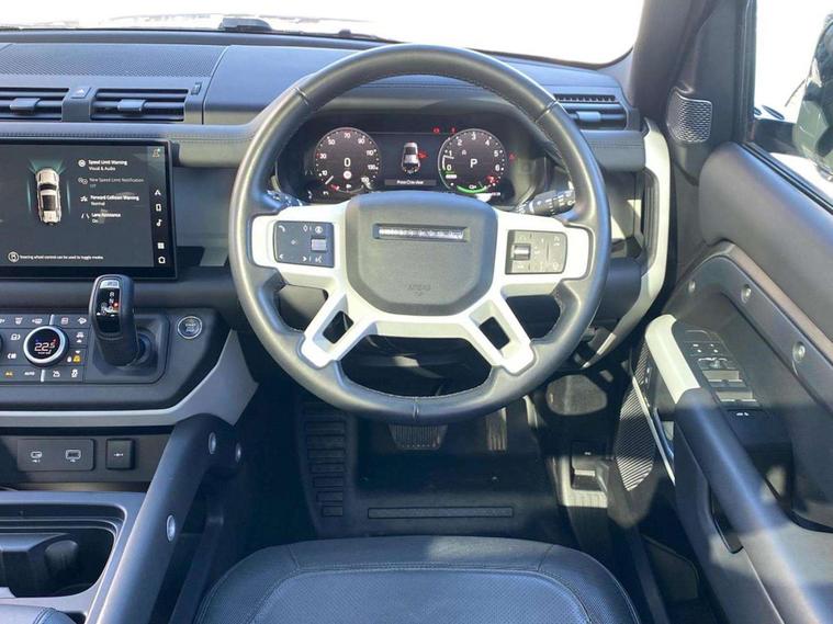 "This 2024 Land Rover Defender 110 P400e X Dynamic HSE is a Land Rover manufacturer approved vehicle with a full service history and only one owner. It features a 2.0 litre petrol plug in hybrid engine, four wheel drive and meets Euro 6 emissions standards. This impressive model boasts an Extended Black Exterior Pack, a Black Contrast Signature Graphic with Interior Storage, and a heated steering wheel for added comfort. Inside, you will find 14 way heated and cooled electric memory front seats with 4 way manual headrests, and Adaptive Cruise Control to make journeys more relaxing. The Defender 110 P400e X Dynamic HSE offers exceptional performance, accelerating from 0 to 60mph in just 5.4 seconds, demonstrating its capability. With a substantial towing weight of 3500 kg and generous boot space, this vehicle is as practical as it is powerful. These attributes, combined with its advanced technology and luxurious appointments, set this Defender apart from other vehicles in its class, offering a superior driving experience."