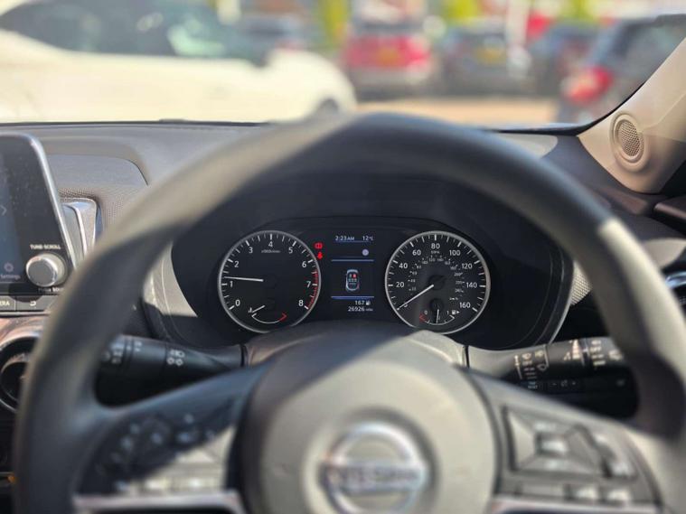 This Nissan Juke 1.0 DIG-T 114 Acenta 5dr offers a great blend of style, efficiency and everyday practicality. Powered by a punchy 1.0-litre turbocharged petrol engine with 114bhp, it delivers smooth performance and impressive fuel economy, making it ideal for both city driving and longer journeys. The Acenta trim adds a strong level of equipment, including touchscreen infotainment, smartphone connectivity, cruise control and a suite of safety features. With its bold crossover styling, elevated driving position and cleverly designed interior, this Juke provides comfort, versatility and standout looks. A smart choice for drivers wanting a modern, economical and well-equipped compact SUV.
