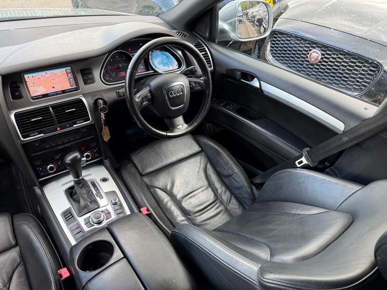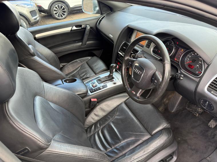 2 KEYS, 7 SEATS, FRESH SERVICE, FRESH MOT, SATNAV, PARKING SENSORS, CLIMATE CONTROL, LEATHER TRIM, 20'' ALLOY WHEELS, PRIVACY GLASSFor sale is a 2007 Audi Q7 3.0 TDI S line SUV with 77750 miles on the clock, powered by a diesel engine. This 5-door, 7-seater SUV comes with a MOT that expires on 21/07/2026. Equipped with a Tiptronic quattro transmission, this vehicle has a carbon footprint of 279 g/km and boasts 229 bhp. Additional features include an adjustable steering column/wheel, armrest, climate control, cruise control, and electric windows in the front and rear. If you're in the market for a spacious and versatile family vehicle, don't miss out on this Audi Q7 with its exceptional comfort, convenience, and driving performance.