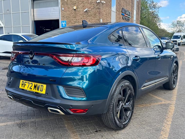 2 KEYS, ULEZ FREE, FRESH SERVICE, TOTAL OF 3 SERVICES (2 MAIN DEALER SERVICES), MOT DUE 07/12/2026, CLIMATE CONTROL, PARKING SENSORS, HALF LEATHER TRIM, ALLOY WHEELS, PRIVACY GLASSThis 2023 Renault Arkana 1.6 E-TECH E-Tech engineered SUV with only 55050 miles on the clock is one sleek and efficient machine. Powered by a Petrol Hybrid engine, this 5-door, 5-seater vehicle is ULEZ compliant and comes with MOT valid until 07/12/2026. The SUV boasts a Euro 6 (s/s) (145 ps) certification, making it a reliable and eco-friendly choice. The vehicle features a 10in TFT Drivers Information Display, Bluetooth - DAB Radio and USB Ports, and an Easy Link 9.3in Portrait Touchscreen with 3D Navigation and Hybrid Voice Recognition. Safety is also top-notch with Renault Automatic Emergency Assist - E-Call, ensuring peace of mind on the road. Finished with a Shiny Black Shark Fin Antenna, this SUV is a stylish and practical choice for any driver.