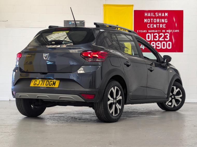 **24 MONTHS PARTS & LABOUR PEACE OF MIND NATIONAL WARRANTY INCLUDED IN THE PRICE**Hailsham Motoring Centre are pleased to be offering this ULEZ compliant 2021 Dacia Sandero Stepway 1.0 TCe Prestige Hatchbackforsale, with ONLY ONE OWNER FROM NEW and 87, 900 miles. This car comes with FULL - SERVICE HISTORY. The car will leave with an interim service, a new MOT and a PDI. Finished in Slate grey with grey Prestigecloth trim.**WHY BUY FROMUS****Established In 1980****24 Month Warranty On All Cars &vans Over £4500, & Those Not Covered By A Manufactures Warranty****All Our Cars Are Hpi Clear So YouCan Buy With Confidence****Competitive Finance RatesSubject ToStatus****Multi Branches****Open 7 Days a Week Inc BankHolidays****Monday - Friday - 8.30amto 6pm****Saturday - 9.00am to 5pm****Sunday- 10am to 4pm****Bank holidays 10am to 4pm**For more pictures and a walk around video please go to https:/ dealer's website call to arrange viewing and atest drive on01323300259.Here at Hailsham Motoring Centre, we have up to 50 cars& asmall selection vans on show, also at our Hampden Park branch we have up to 50 further cars & a small selection vans available for viewing, please call 01323300259 for more info.For more information on our Stepway please see the benefits below as stated,