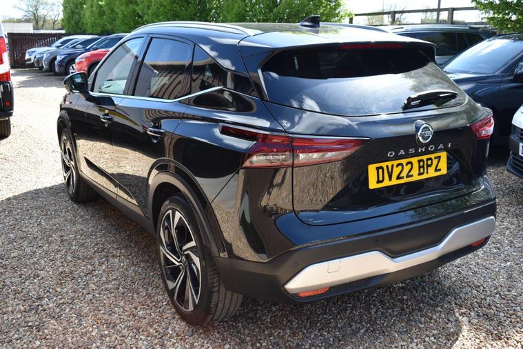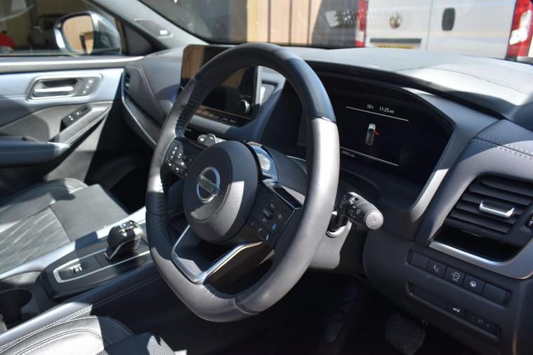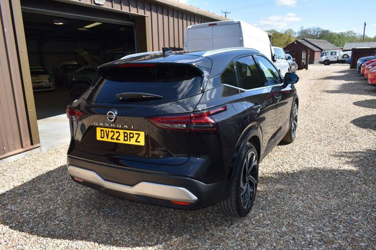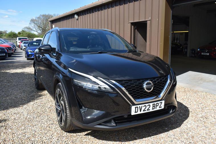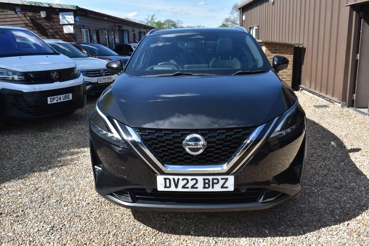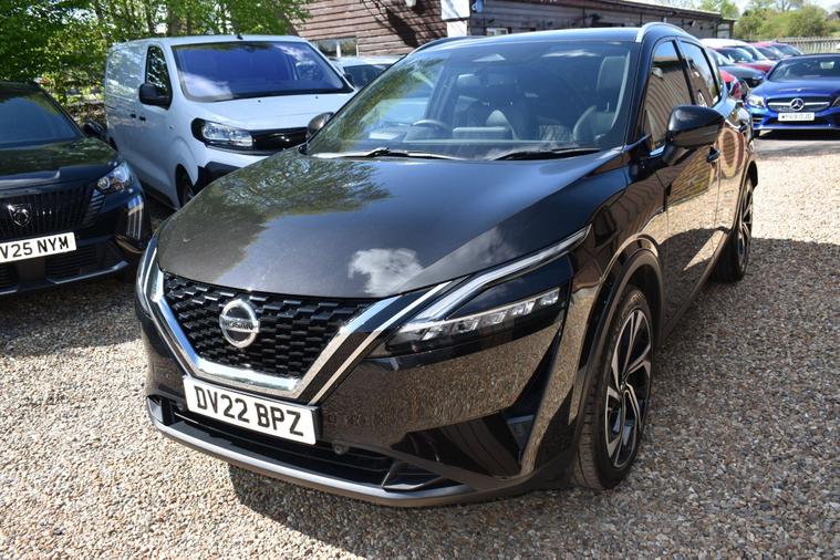 Finished in Black with premium black leather interior, one owner, full Nissan service history, front and rear parking sensors, privacy glass, chrome roof rails, 20'' alloy wheels, electric seats and memory, automatic, adaptive cruise control, eco start/stop function, heated front seats, panoramic glass roof, electric tailgate, Nissan Connect, Apple Car Play/Android Auto, HPI clear, finance available with this vehicle.... for further information please contact us on 01483334205.This 2022 Nissan Qashqai DIG-T Tekna+ is a superb example, boasting exceptionally low mileage for its age at just 24, 899 miles and having been owned by only one person. This Euro 6 compliant 1.3L Petrol Hybrid model comes with a host of desirable features, including Intelligent Auto Headlights that activate automatically, and seamless Bluetooth connectivity for audio streaming. Enjoy your favourite apps on the go with Android Auto and Apple CarPlay integration, while the Blind Spot Warning system enhances your awareness on the road. The Tekna+ trim also offers an electrically adjustable passenger seat with massage and memory functions for ultimate comfort.The Qashqai DIG-T Tekna+ stands out with its impressive specification, indicating a superior ownership experience compared to other vehicles in its class. Its low insurance group rating is a significant advantage, potentially saving you money on running costs. Combined with its single owner history and minimal mileage, this 2022 Nissan Qashqai represents a well cared for and economically sensible choice for your next vehicle.