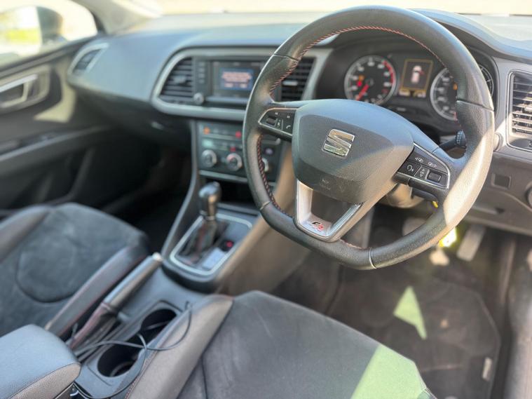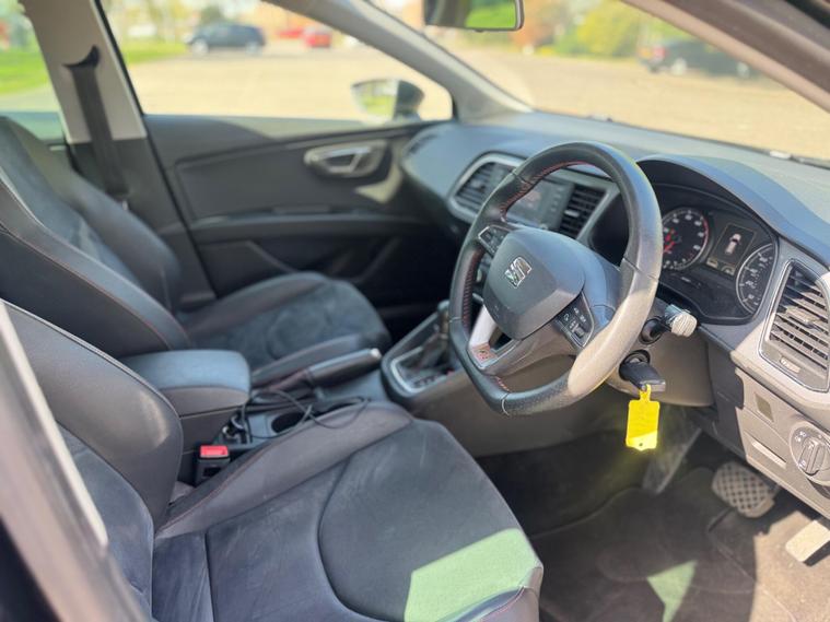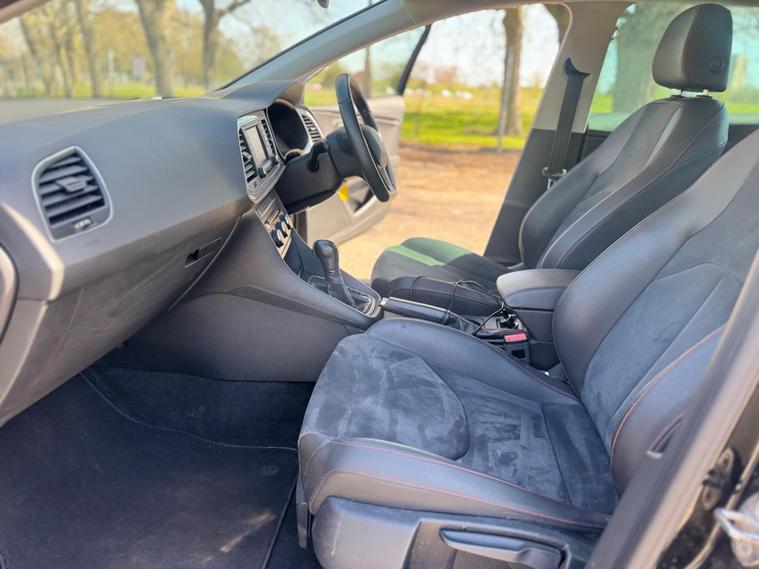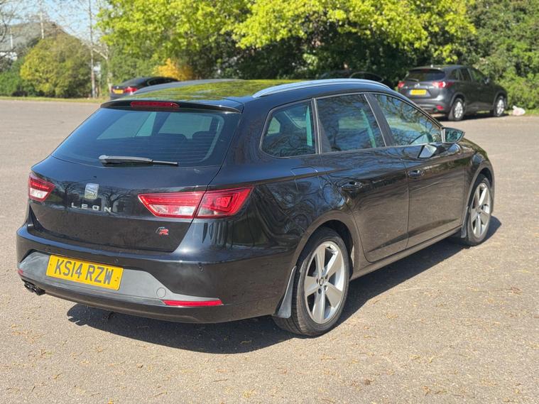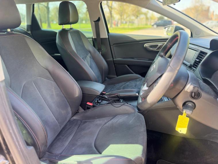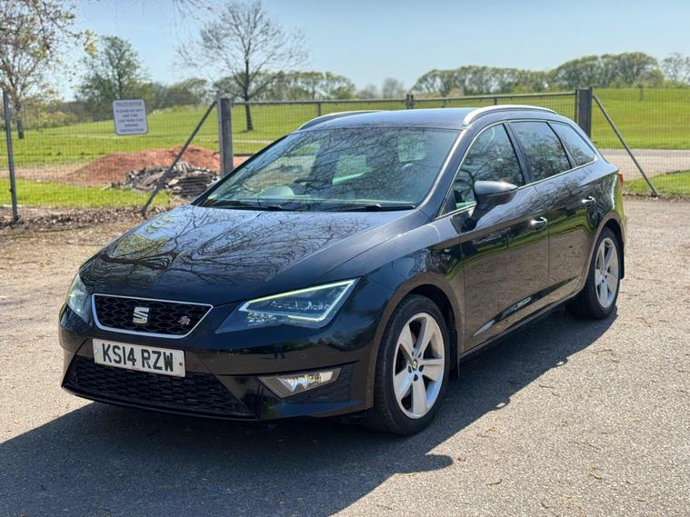 With a full service history up to 103, 990 miles in April 2026, this 2014 SEAT Leon TSI FR offers excellent provenance. This Euro 6 compliant 1.8 litre petrol model comes with a clear vehicle history check and a 3 month warranty, alongside 12 months MOT provided on purchase. The FR trim boasts impressive features including a Navigation System High with SEAT Sound System, full LED headlights, and stylish 18 inch Performance alloy wheels. Inside, you'll find Alcantara and leatherette bolsters in black, complemented by rear parking sensors for added convenience.This SEAT Leon TSI FR stands out with its impressive fuel economy of 49 mpg, low CO2 emissions, and a low insurance group, making it an economical choice. Its performance is equally noteworthy, achieving 0 to 62 mph in just 7.7 seconds, demonstrating a strong balance between efficiency and driving enjoyment. Furthermore, the generous boot space ensures practicality for everyday use and longer journeys, setting it apart from many other vehicles in its class.