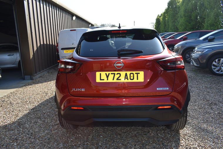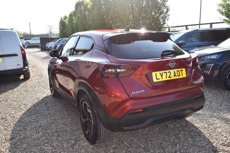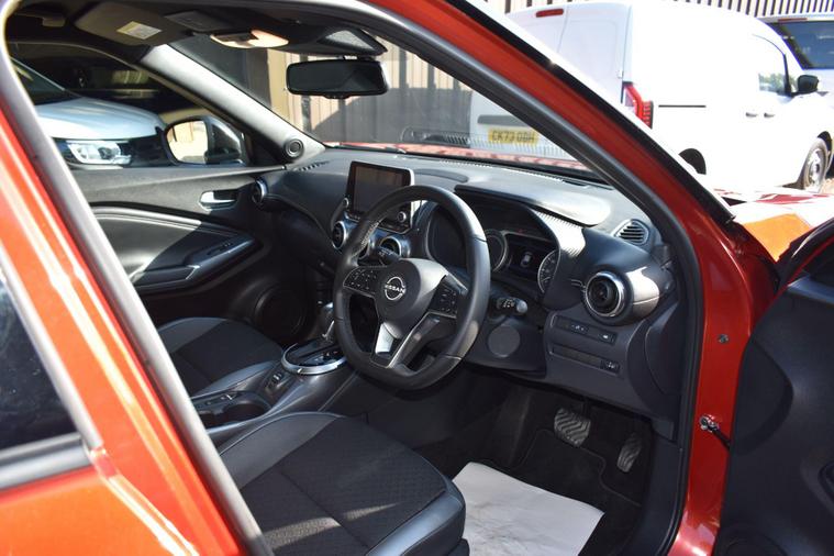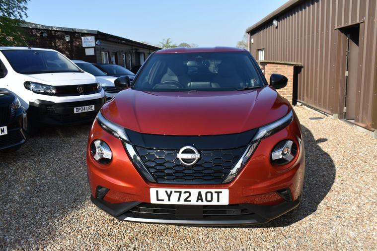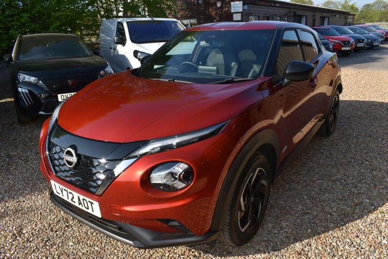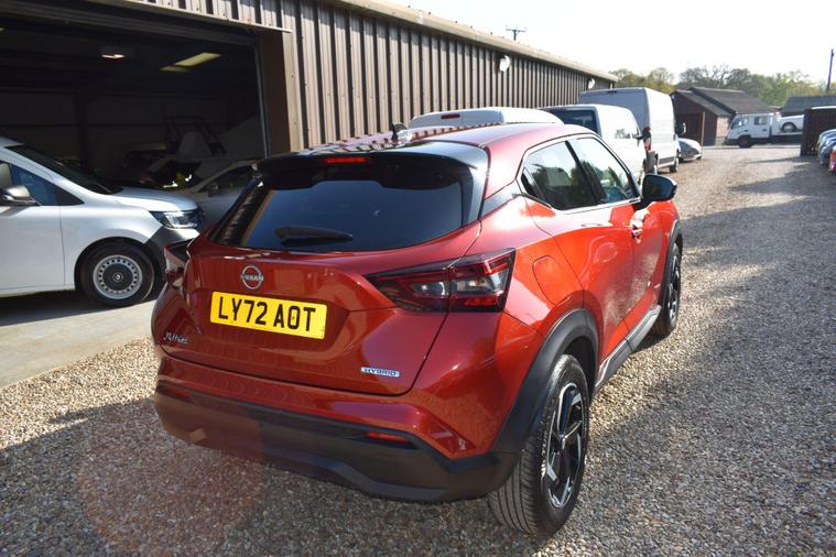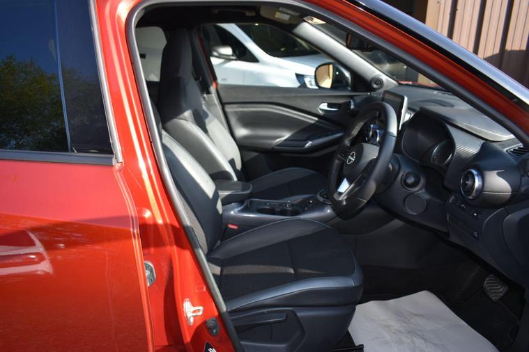 Finished in Fuji Sunset Red with half black leather/cloth interior, one owner from new, full Nissan main dleaer service history, front and rear parking sensors, electric folding mirrors, keyless entry, keyless start, automatic, LDW - lane departure warning, cruise control, air con, reverse camera with guidelines, sat nav, privacy glass, HPI clear, finance available with this vehicle..... for furthe rinformtion please contact us on 01483334205. This 2023 Nissan Juke N Connecta offers an exceptional ownership proposition with its remarkably low mileage of just 12125 miles, having been cherished by only one owner. This stylish hatchback is powered by an efficient 1.6L Petrol Hybrid engine, meeting Euro 6 emission standards. Its N Connecta trim level comes equipped with a host of convenient features, including LED headlights for enhanced visibility, and both front and rear parking sensors with parking assistance to make manoeuvring effortless. The Intelligent Key system provides keyless entry and walk away lock functionality, while automatic climate control ensures a comfortable cabin temperature.The Juke N Connecta stands out with its impressive fuel economy, achieving a highlight of 55 mpg, which indicates it is more economical than many similar vehicles. Furthermore, its low insurance group and low CO2 emissions highlight its cost effectiveness and environmental consideration, making it a sensible choice for a wide range of drivers.