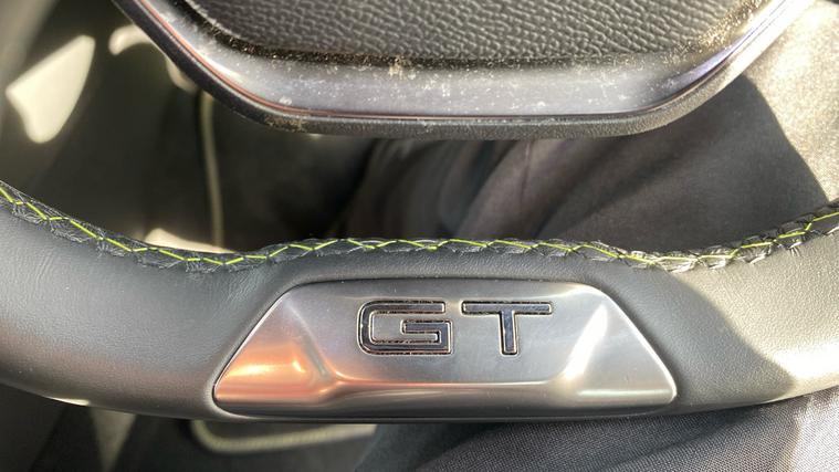 - Multifunction Full Grain Leather Steering Wheel with Adamite Green Stitching and GT Badging