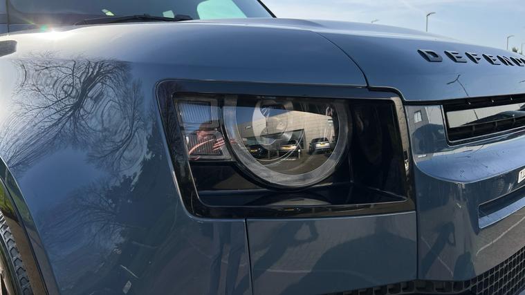 This stunning Tasman Blue Defender 110 is presented in a fantastic specification, equipped with some great optional extras, and offers a sublime drive to match. Our Defender 110 X-Dynamic SE is finished in Tasman Blue matched with the Extended Black Exterior Pack, and 20-inch Style 6011 wheels in Gloss Black, over Ebony Resist interior, and comes equipped with some fantastic features and optional extras, including, 12-way Heated front seats with Memory function, Two-zone Climate Control, Meridian Sound System, Privacy Glass, Sliding Panoramic Roof, Premium LED Headlights with Signature DRL, Keyless Entry, Adaptive Cruise Control, Lane Keep Assist, Blind Spot Assist, 360-degree Parking Aids, 3D Surround Camera, Wireless Apple CarPlay and Android Auto, DAB Radio, and much more. Call today for more information.