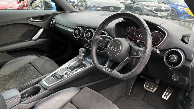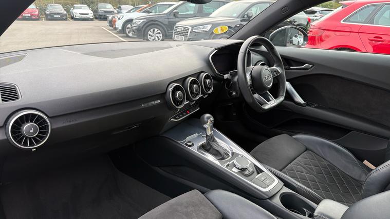 Features Include Audi Virtual Cockpit, Heated Sports Seats, Cruise Control With Speed Limiter, LED Headlights And Apple Carplay And Android Auto Connectivity. Presented in excellent condition, this Audi TT S Line Coupe is a beautifully crafted sports coupe that blends iconic design, sharp performance and premium technology. Finished in the stunning Mythos Black, it delivers a sleek and sophisticated presence, perfectly highlighting the TT's unmistakable silhouette. Powered by a refined 2.0-litre TFSI turbocharged petrol engine, this model produces around 197PS and 320Nm of torque, delivering smooth, responsive performance with a sporty edge. Paired with Audi's S Tronic automatic transmission, it offers rapid, seamless gear changes and an engaging driving experience whether on winding roads or longer motorway journeys. The S Line specification enhances the TT's dynamic character with sport-inspired styling, upgraded suspension and a more focused driving feel, making every journey both exciting and refined.