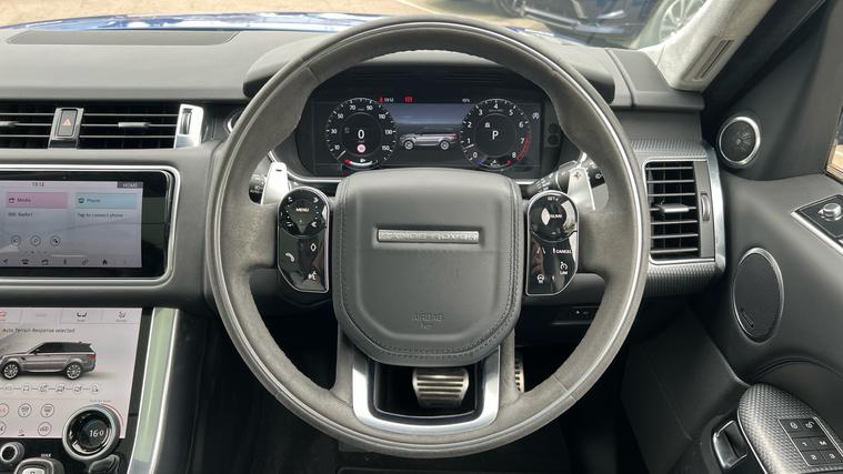 Here is a rare opportunity to purchase a Range Rover Sport in HST variant, featuring the smooth P400 powertrain, Carbon Fibre trim, and finished in SVO bespoke Balmoral Blue setting it apart further. Our Range Rover Sport HST is finished in SVO Velocity Blue, matched with 21-inch Style 9001 wheels in Gloss Black, over Ebony Windsor leather interior, and comes equipped with a huge range of fantastic features and optional extras, including, 16-way Heated front seats with Memory function, Heated rear seats, Three-zone Climate Control, Meridian Surround Sound System, Fixed Panoramic Roof, Matrix LED Headlights, Keyless Entry, Cruise Control and Speed Limiter, Lane Departure Warning, Blind Spot Monitor, Front and Rear Parking Aids, Rear Camera, Apple CarPlay and Android Auto, DAB Radio, and much more. Call today for more information.